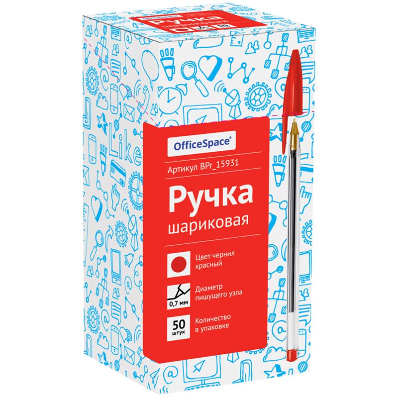 Ручка шариковая OfficeSpace красная, 0,7мм