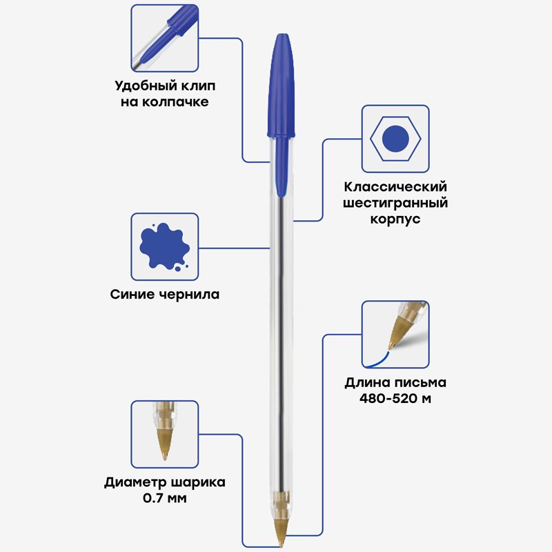 Ручка шариковая OfficeSpace "LC" синяя, 0,7мм, штрих-код