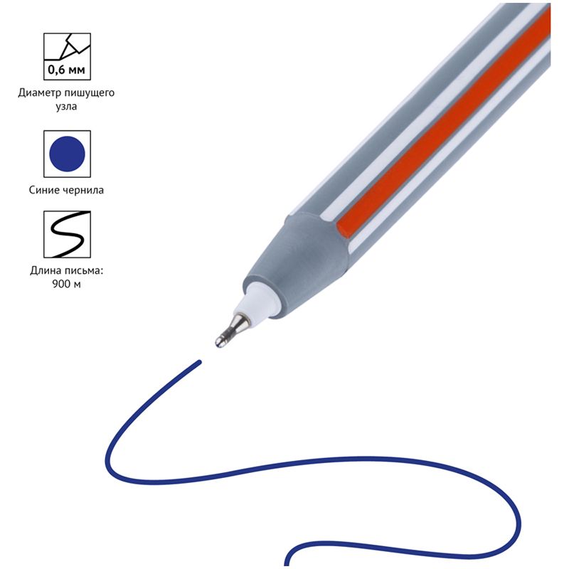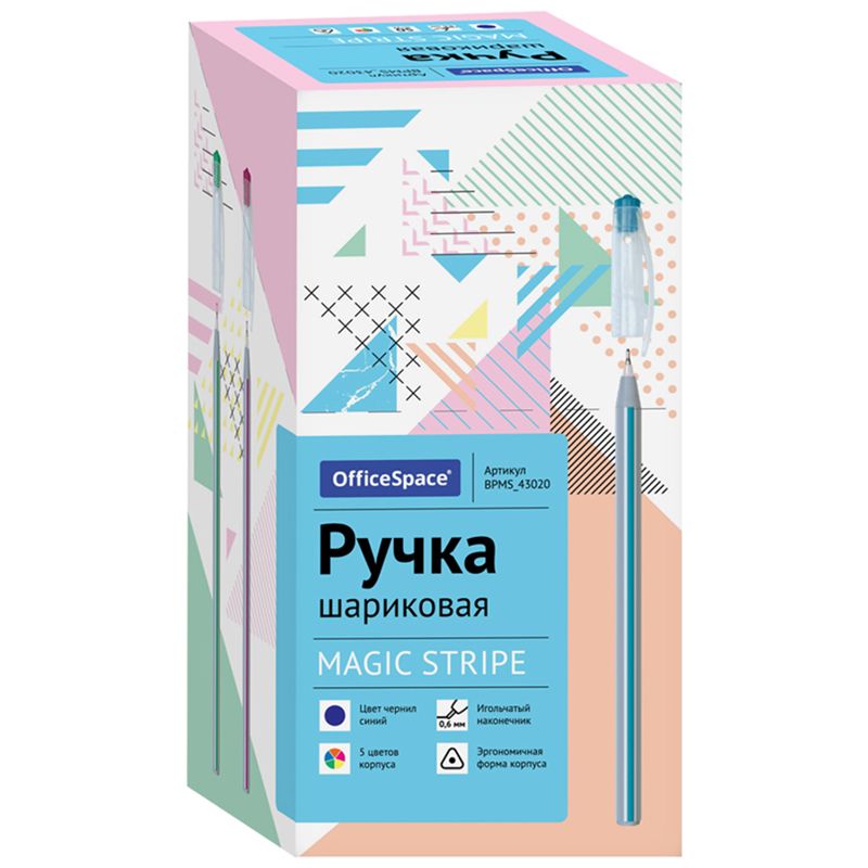 Ручка шариковая OfficeSpace "Magic stripe" синяя, 0,6мм, трехгранная, на масляной основе, штрих-код