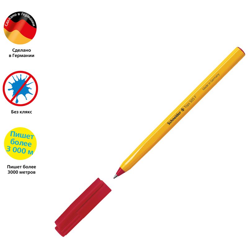 Ручка шариковая Schneider "Tops 505 F" красная, 0,8мм, оранжевый корпус