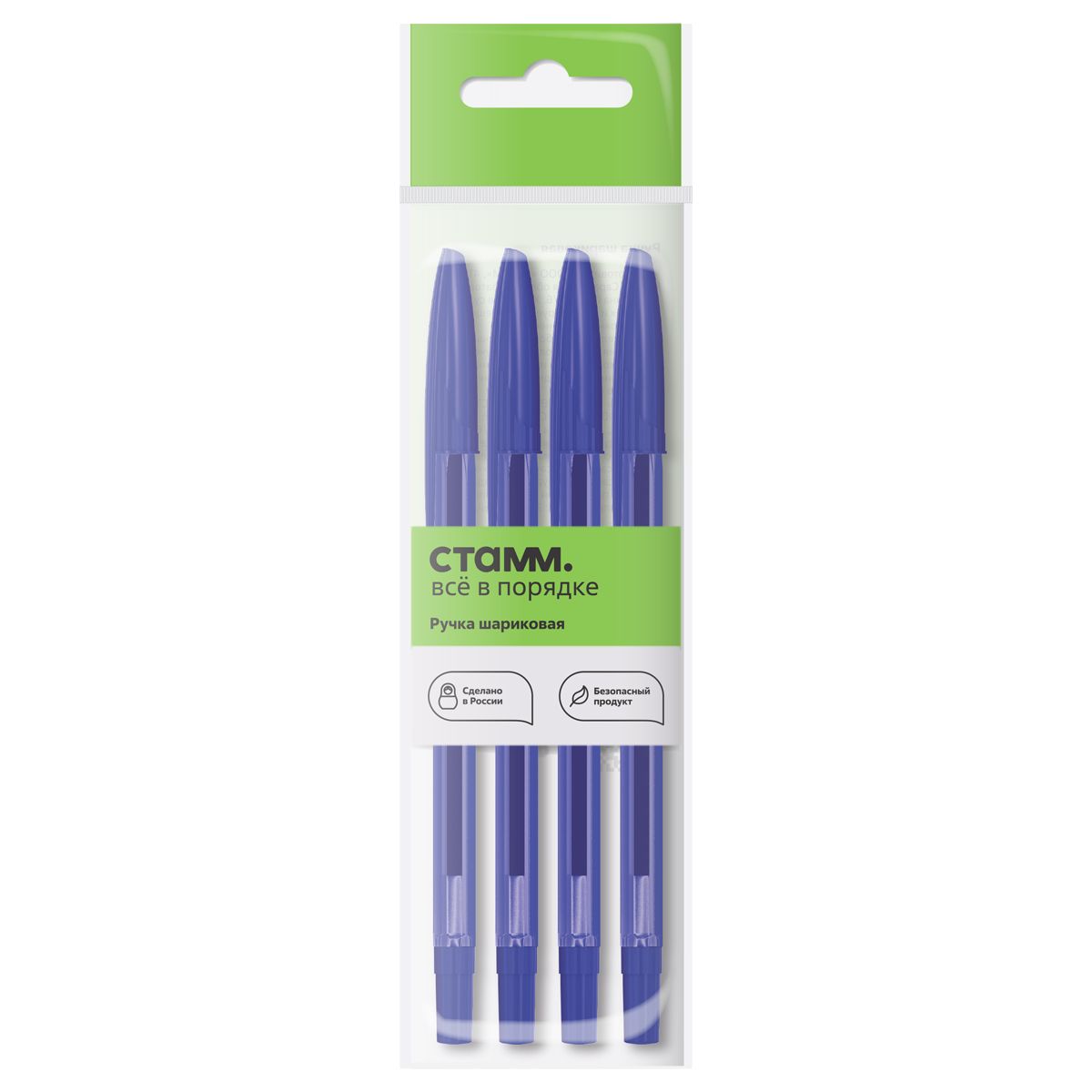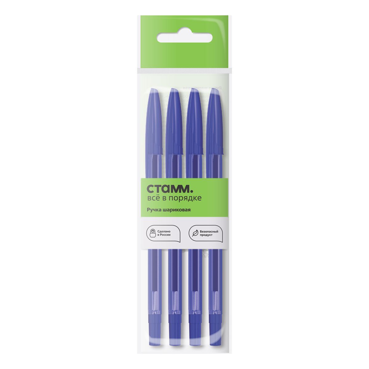 Ручка шариковая СТАММ "111" 4шт., синие, 1,0мм, тонированный корпус, пакет с европодвесом