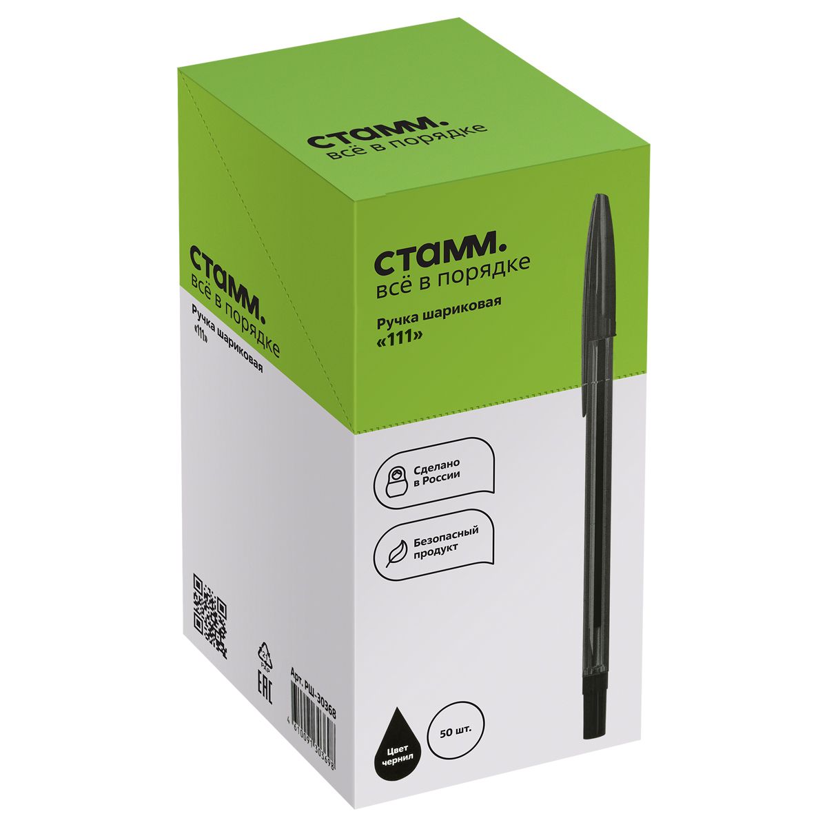 Ручка шариковая СТАММ "111" черная, 1,0мм, тонированный корпус