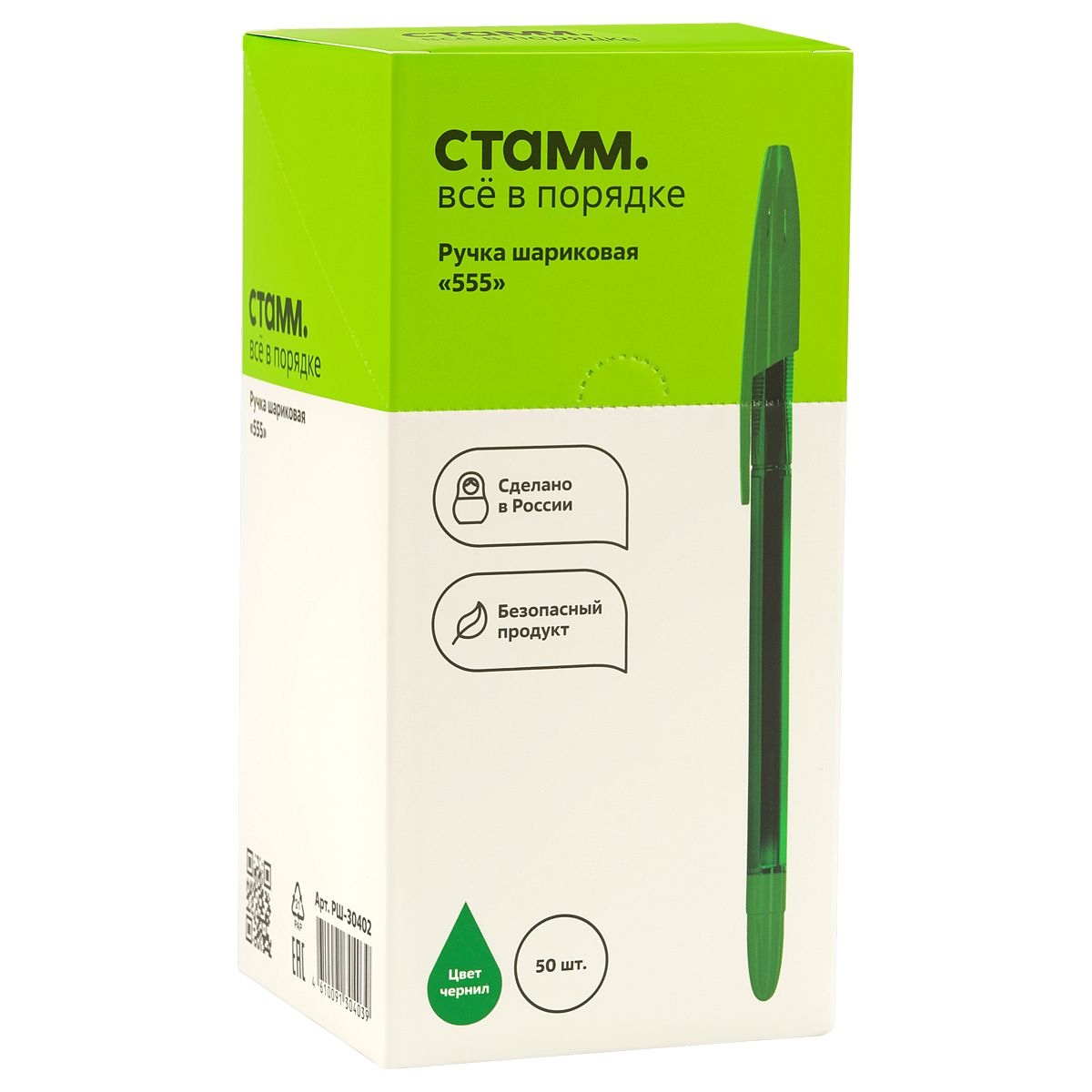 Ручка шариковая СТАММ "555" зеленая, 0,7мм, тонированный корпус