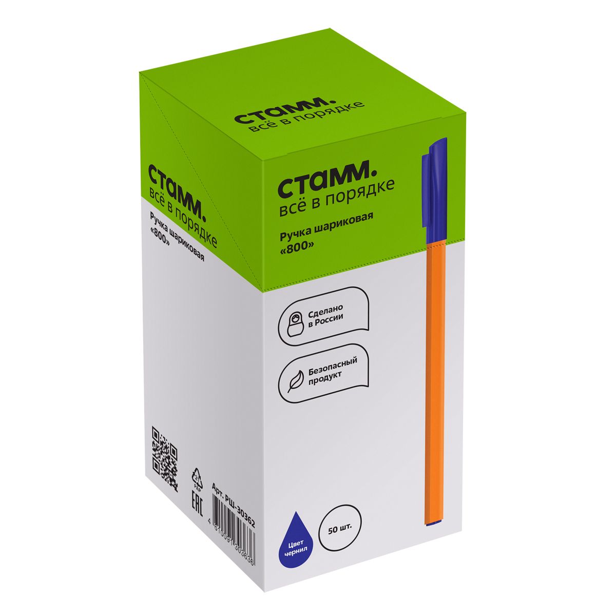 Ручка шариковая СТАММ "800" синяя, 0,7мм, оранжевый корпус
