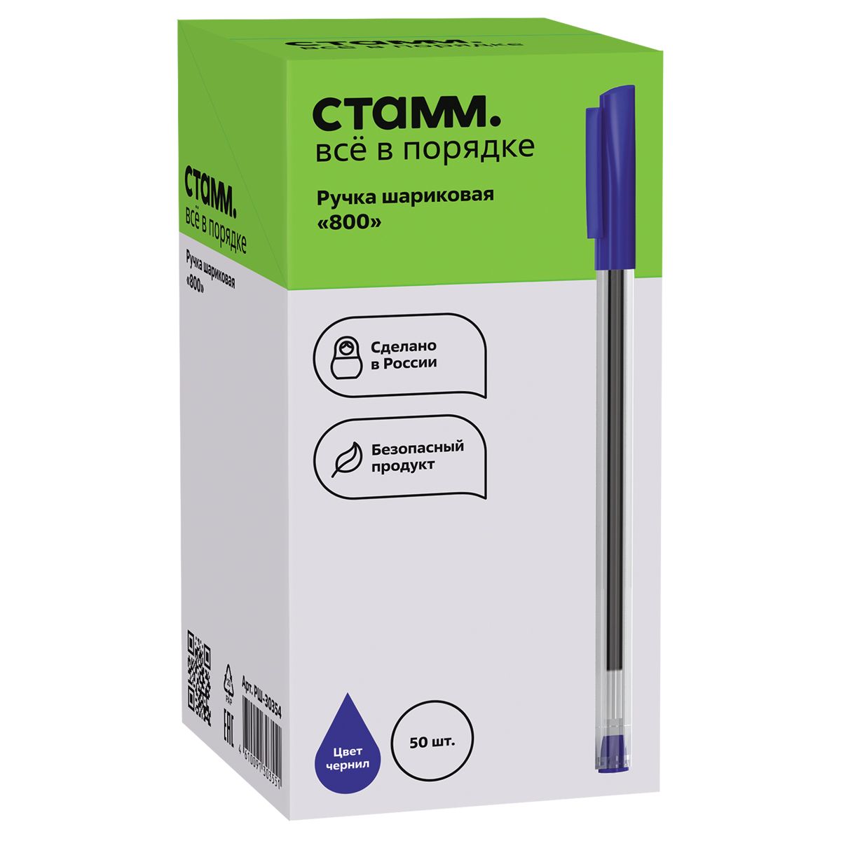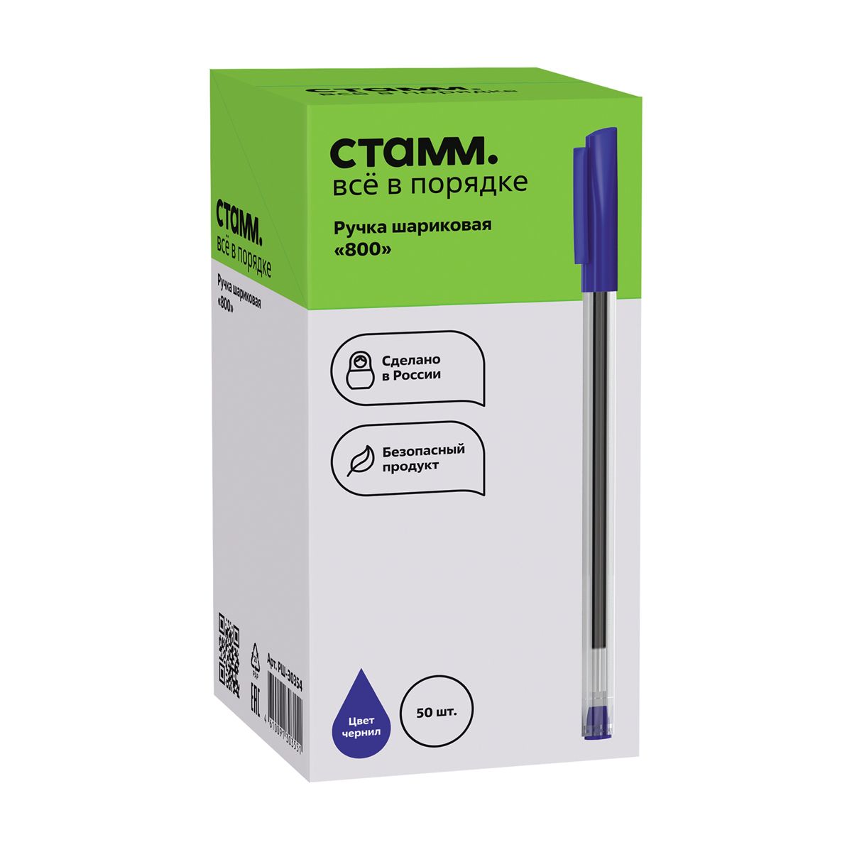 Ручка шариковая СТАММ "800" синяя, 0,7мм