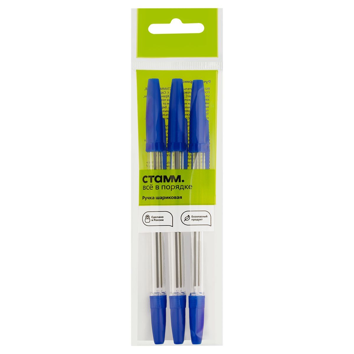 Ручка шариковая СТАММ "Оптима" 3шт., синие, 1,0мм, пакет с европодвесом
