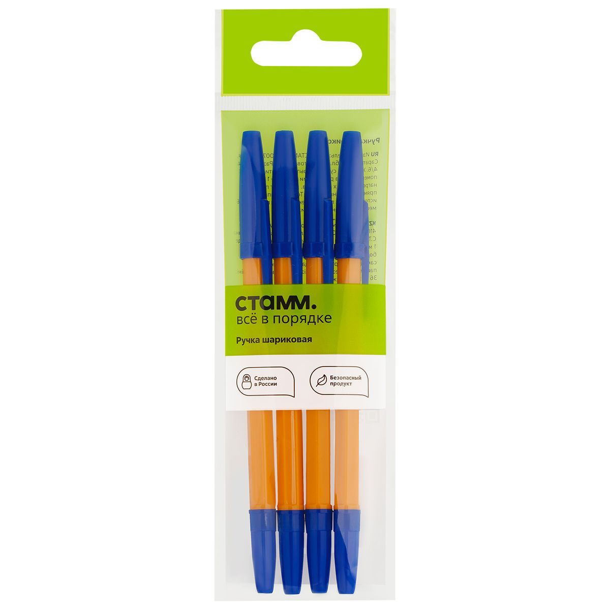 Ручка шариковая СТАММ "Оптима" 4шт., синие, 1,0мм, оранжевый корпус, пакет с европодвесом
