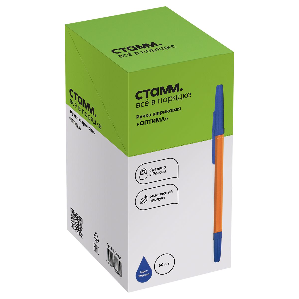 Ручка шариковая СТАММ "Оптима" синяя, 1,0мм, оранжевый корпус