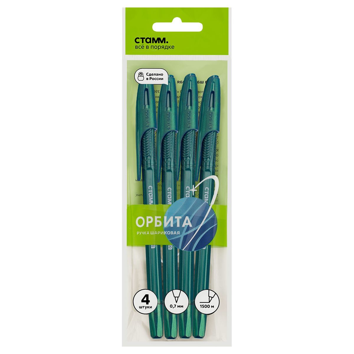 Ручка шариковая СТАММ "Орбита 100" 4шт., синие, 0,7мм, хамелеон, пакет с европодвесом