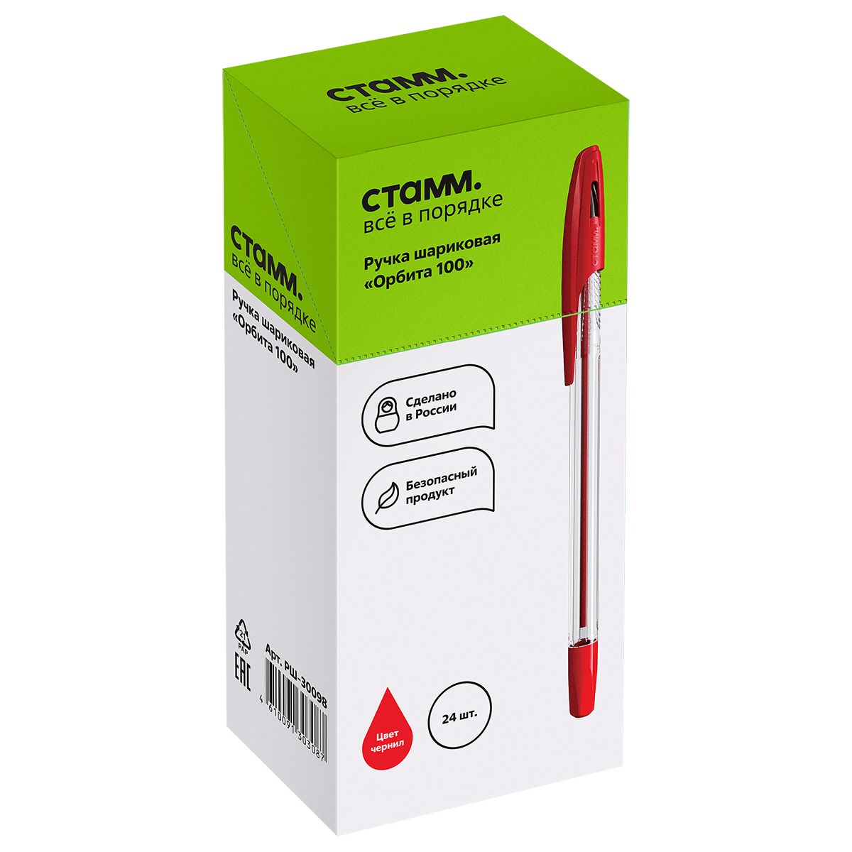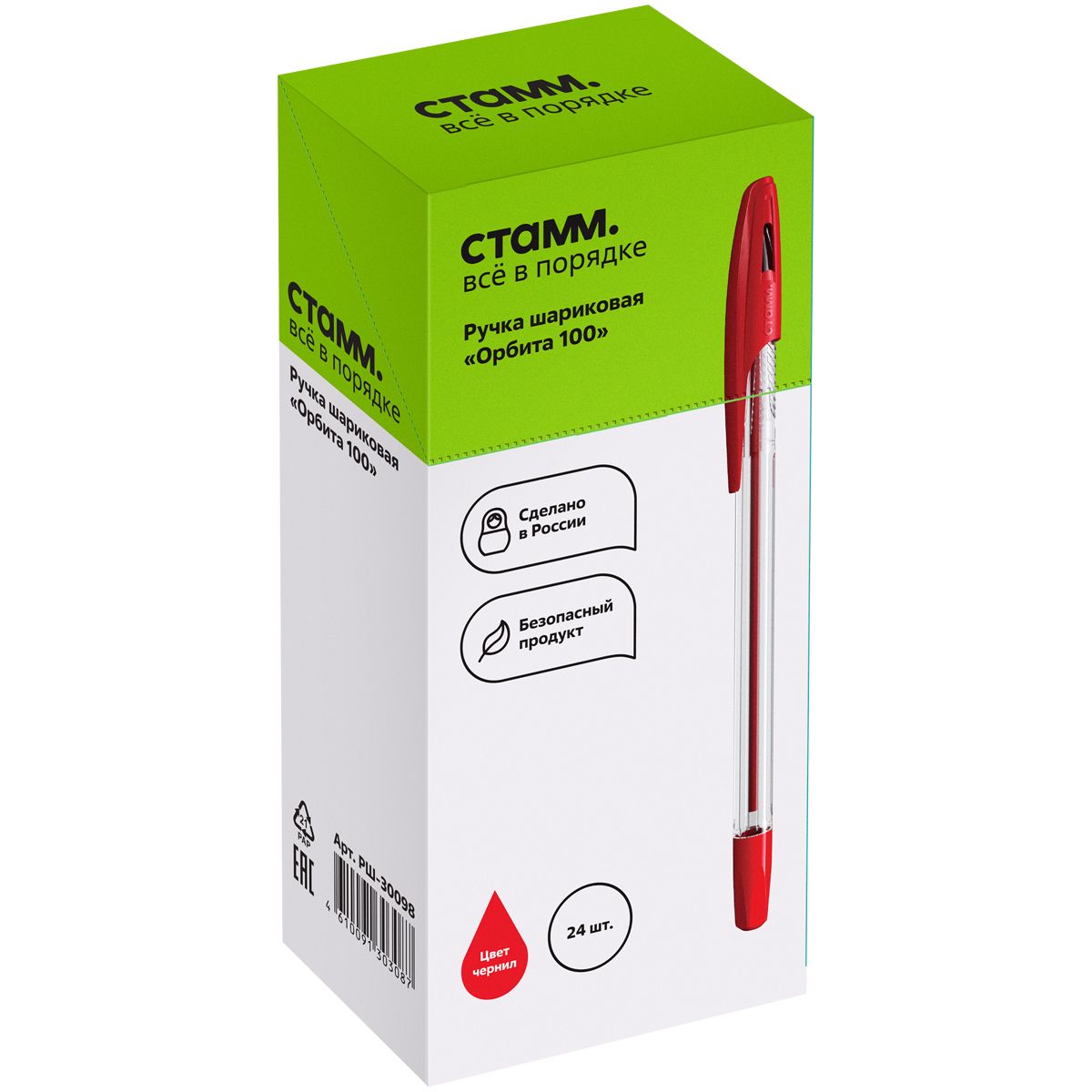 Ручка шариковая СТАММ "Орбита 100" красная, 0,7мм
