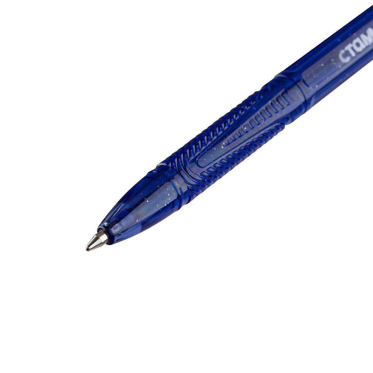 Ручка шариковая СТАММ "Орбита 100" синяя, 0,7мм, тонированный корпус с блёстками