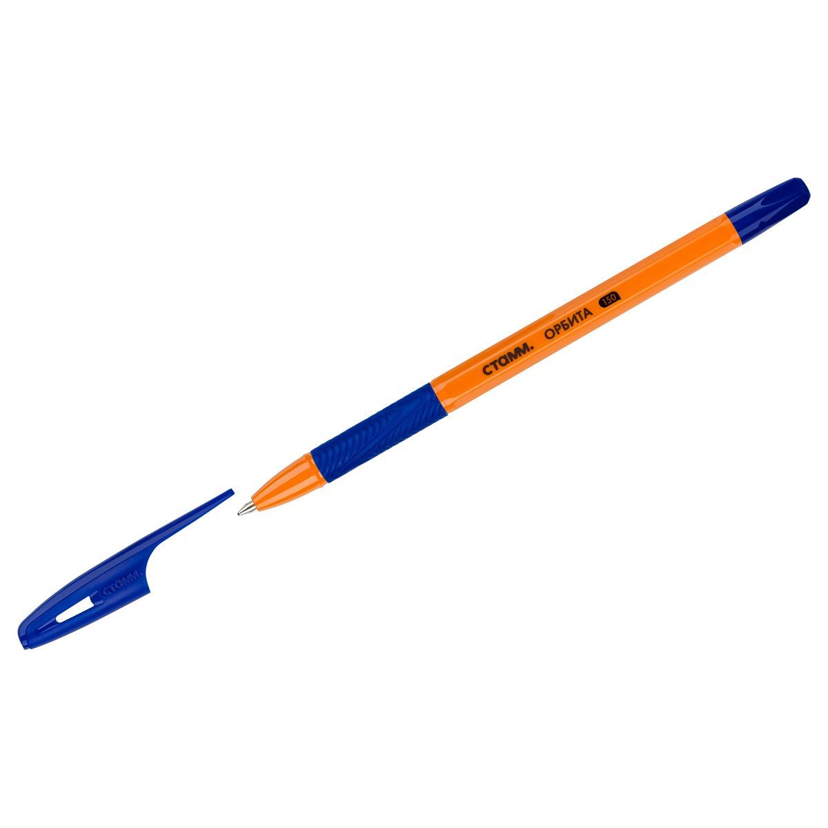 Ручка шариковая СТАММ "Орбита 150" синяя, 0,7мм, оранжевый корпус