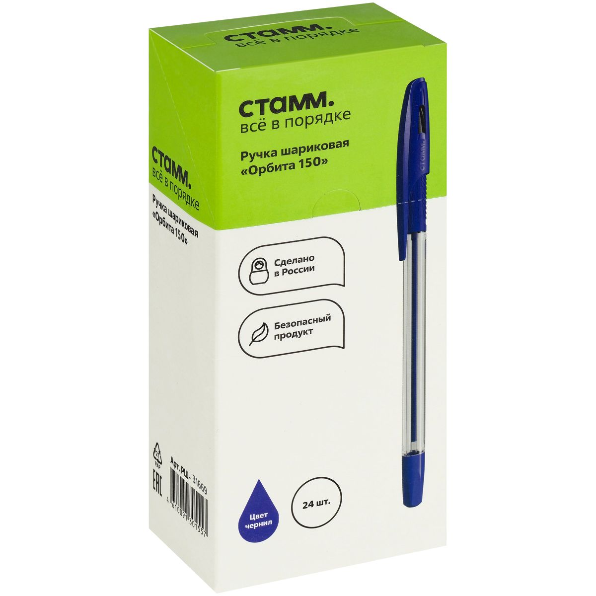 Ручка шариковая СТАММ "Орбита 150" синяя, 0,7мм