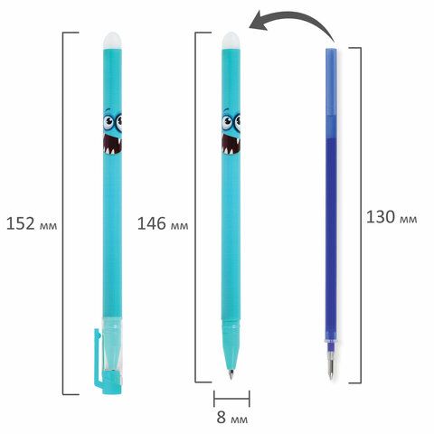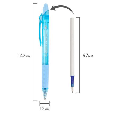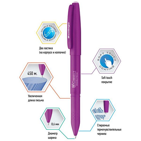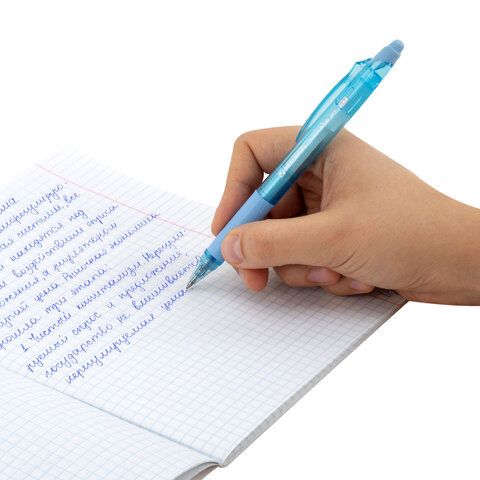 Такие ручки оснащены специальным термочувствительным механизмом: при трении резиновым стирателем чернила обесцвечиваются и исчезают с бумаги. Это позволяет многократно использовать одну и ту же строчку, что особенно ценно при подготовке черновиков, заметок или домашних заданий.