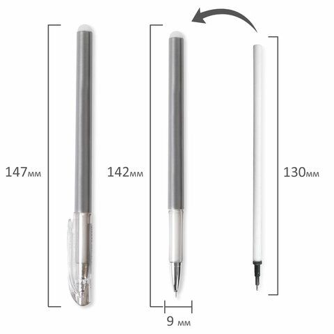 - Ручка стираемая гелевая + 9 стержней в пластиковой трубе — практичный комплект для тех, кто часто пользуется такой техникой письма и хочет иметь запасные стержни под рукой.