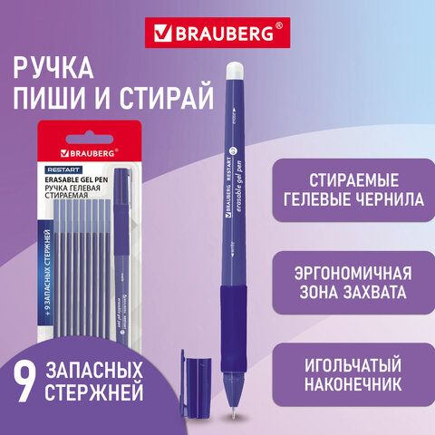Например, стираемая гелевая ручка BRAUBERG "RESTART" сочетает в себе современный дизайн, эргономичный грип и высокое качество письма, что делает её отличным выбором для повседневного применения.