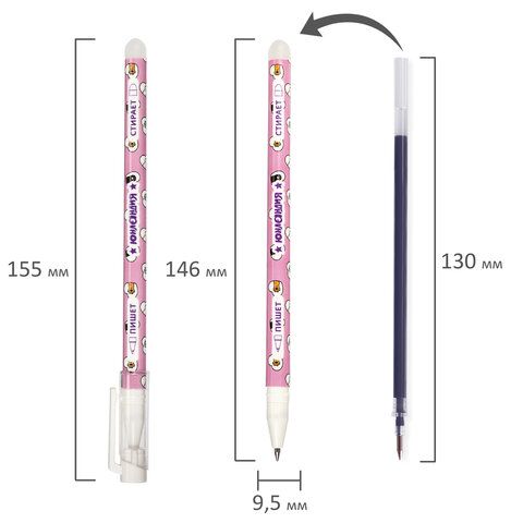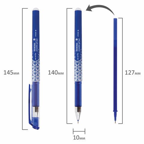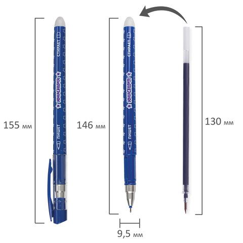 Такие ручки оснащены специальным термочувствительным механизмом: при трении резиновым стирателем чернила обесцвечиваются и исчезают с бумаги. Это позволяет многократно использовать одну и ту же строчку, что особенно ценно при подготовке черновиков, заметок или домашних заданий.
