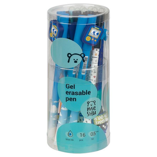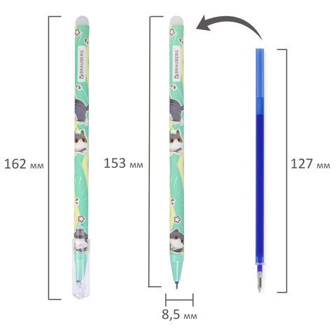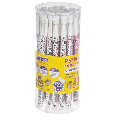 - Ручка стираемая гелевая + 9 стержней в пластиковой трубе — практичный комплект для тех, кто часто пользуется такой техникой письма и хочет иметь запасные стержни под рукой.