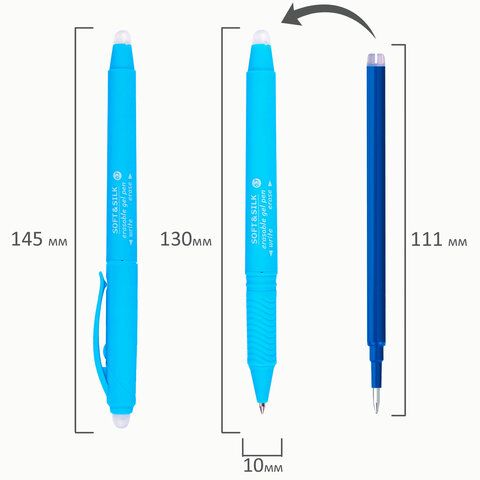 Такие ручки оснащены специальным термочувствительным механизмом: при трении резиновым стирателем чернила обесцвечиваются и исчезают с бумаги. Это позволяет многократно использовать одну и ту же строчку, что особенно ценно при подготовке черновиков, заметок или домашних заданий.