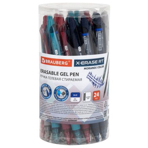 Ручка гелевая стираемая автоматическая BRAUBERG "X-ERASE RT MORANDI COLOR", СИНЯЯ, пишущий узел 0,7 мм, линия письма 0,5 мм, 144425