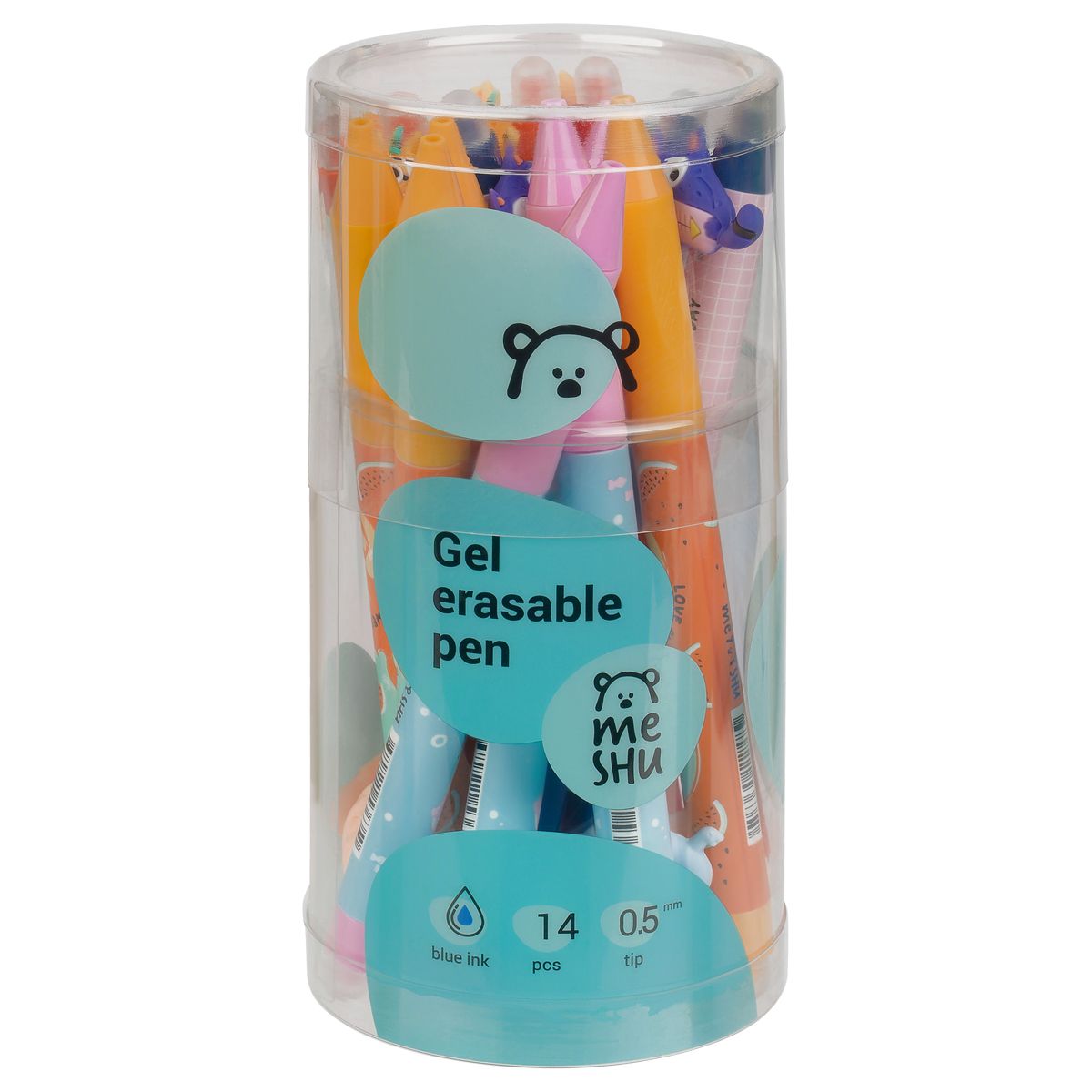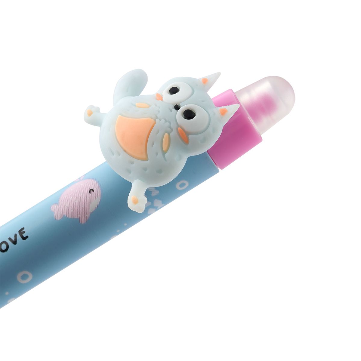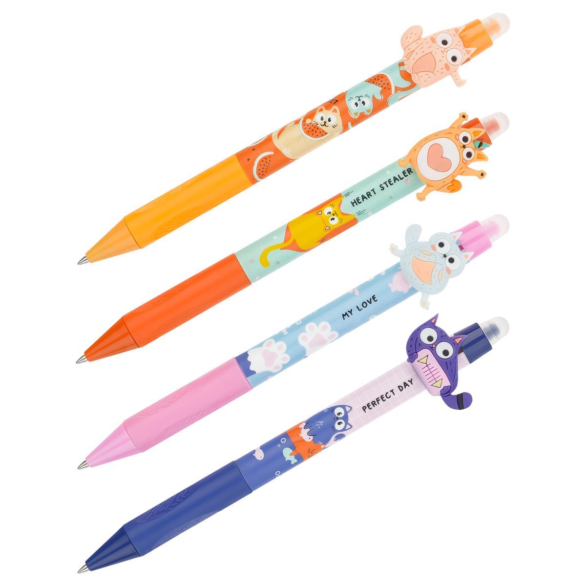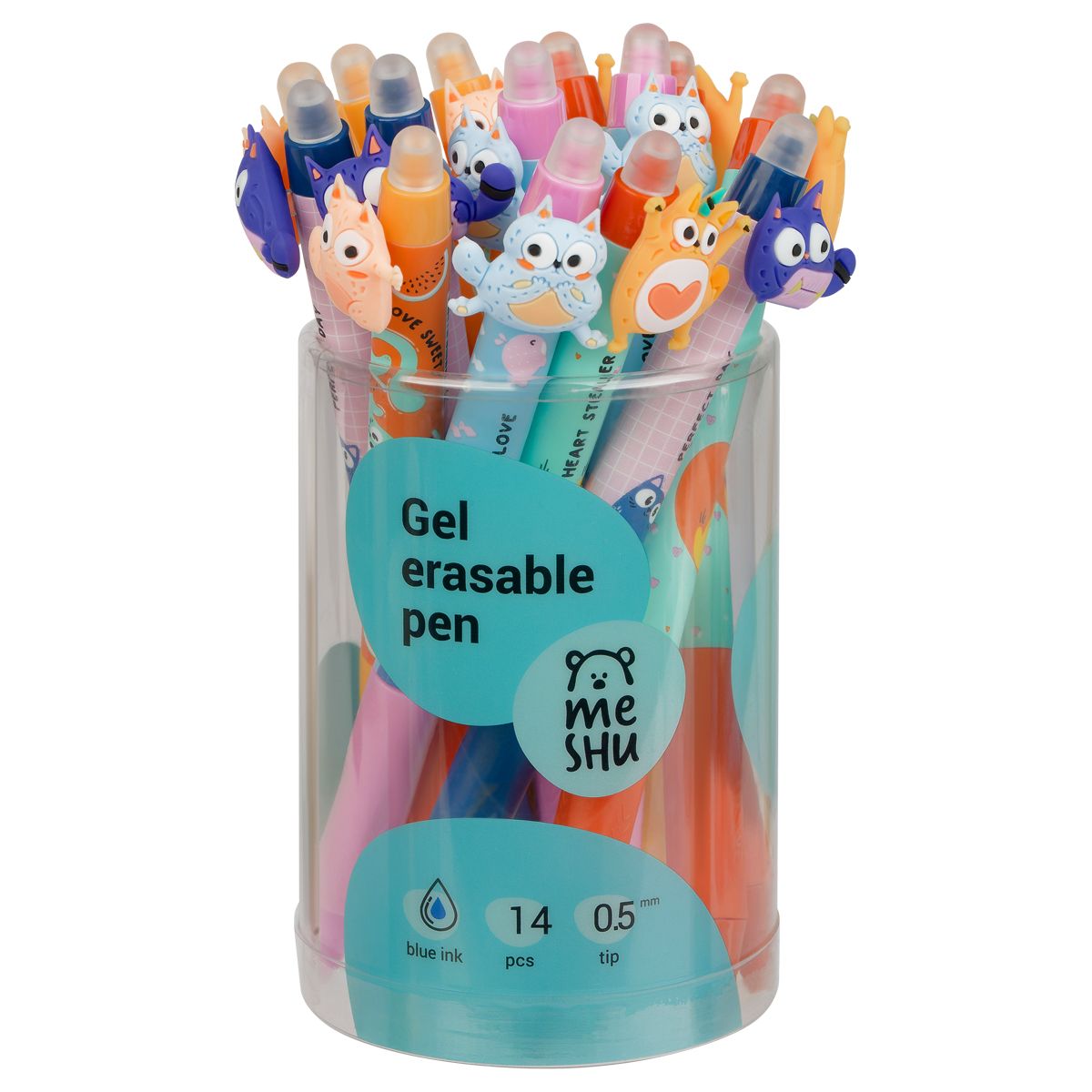 Ручка гелевая стираемая автоматическая MESHU "Cool cats" синяя, 0,5мм, корпус ассорти, с топпером
