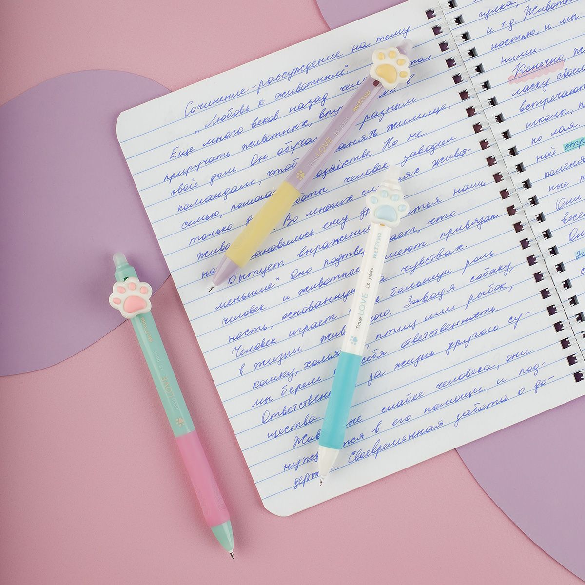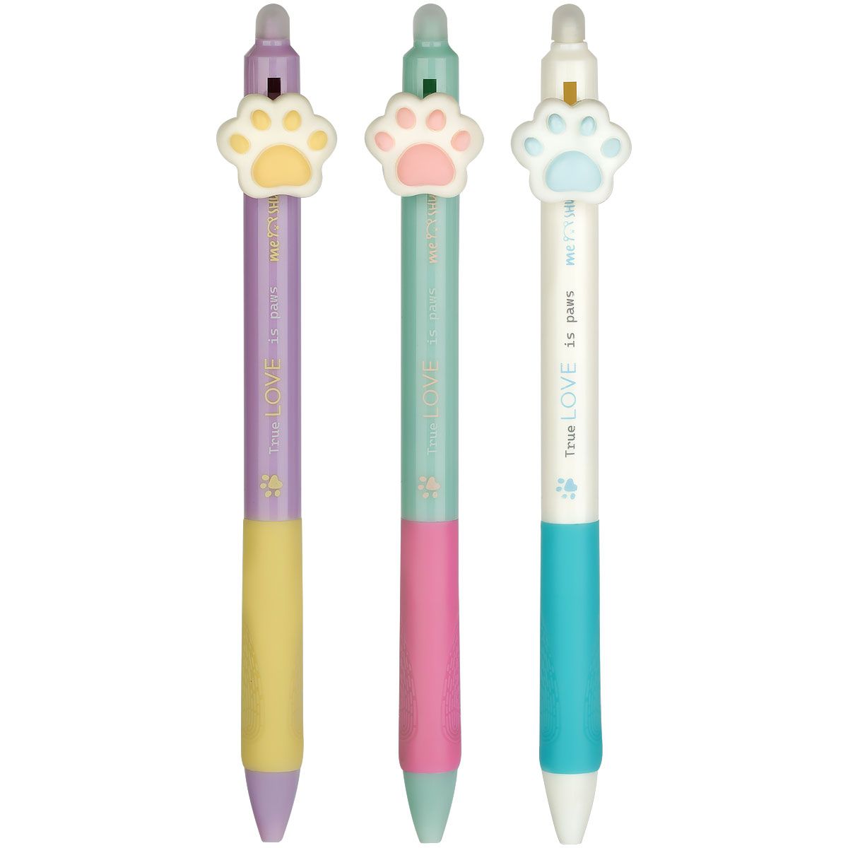 Ручка гелевая стираемая автоматическая MESHU "Sweet paws" синяя, 0,5мм, корпус ассорти, с топпером