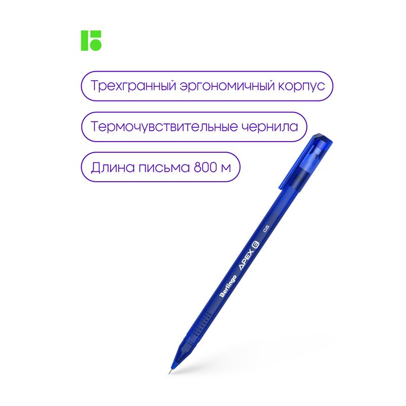 Ручка гелевая стираемая Berlingo "Apex E" синяя, 0,5мм, трехгранная
