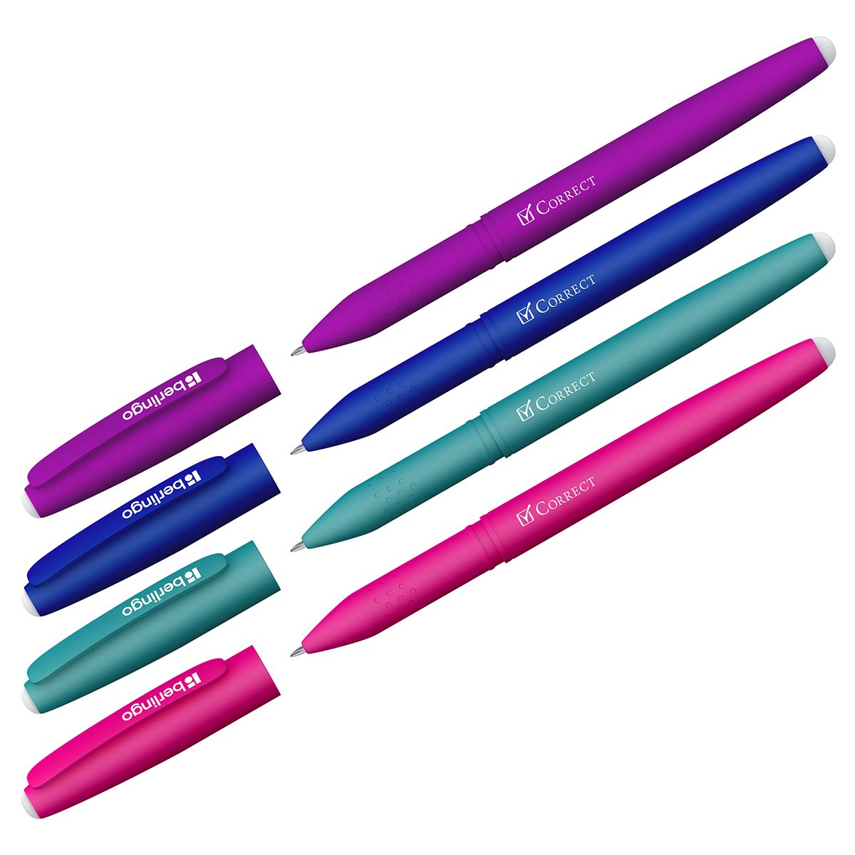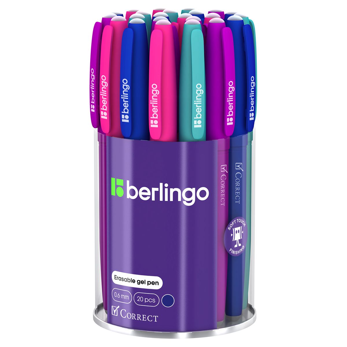Ручка гелевая стираемая Berlingo "Correct" синяя, 0,6мм, прорезин. корпус, корпус ассорти