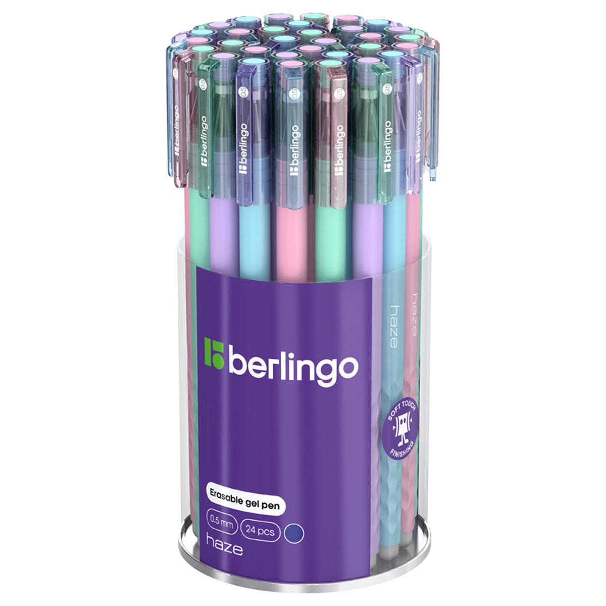 Ручка гелевая стираемая Berlingo "Haze" синяя, 0,5мм, прорезин. корпус, корпус ассорти