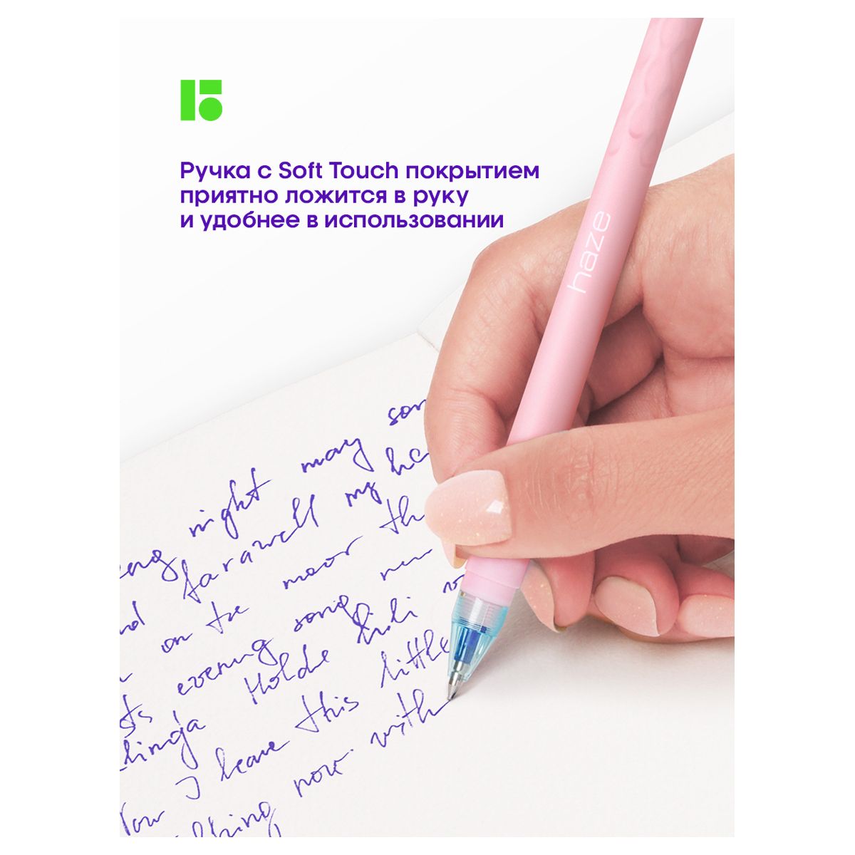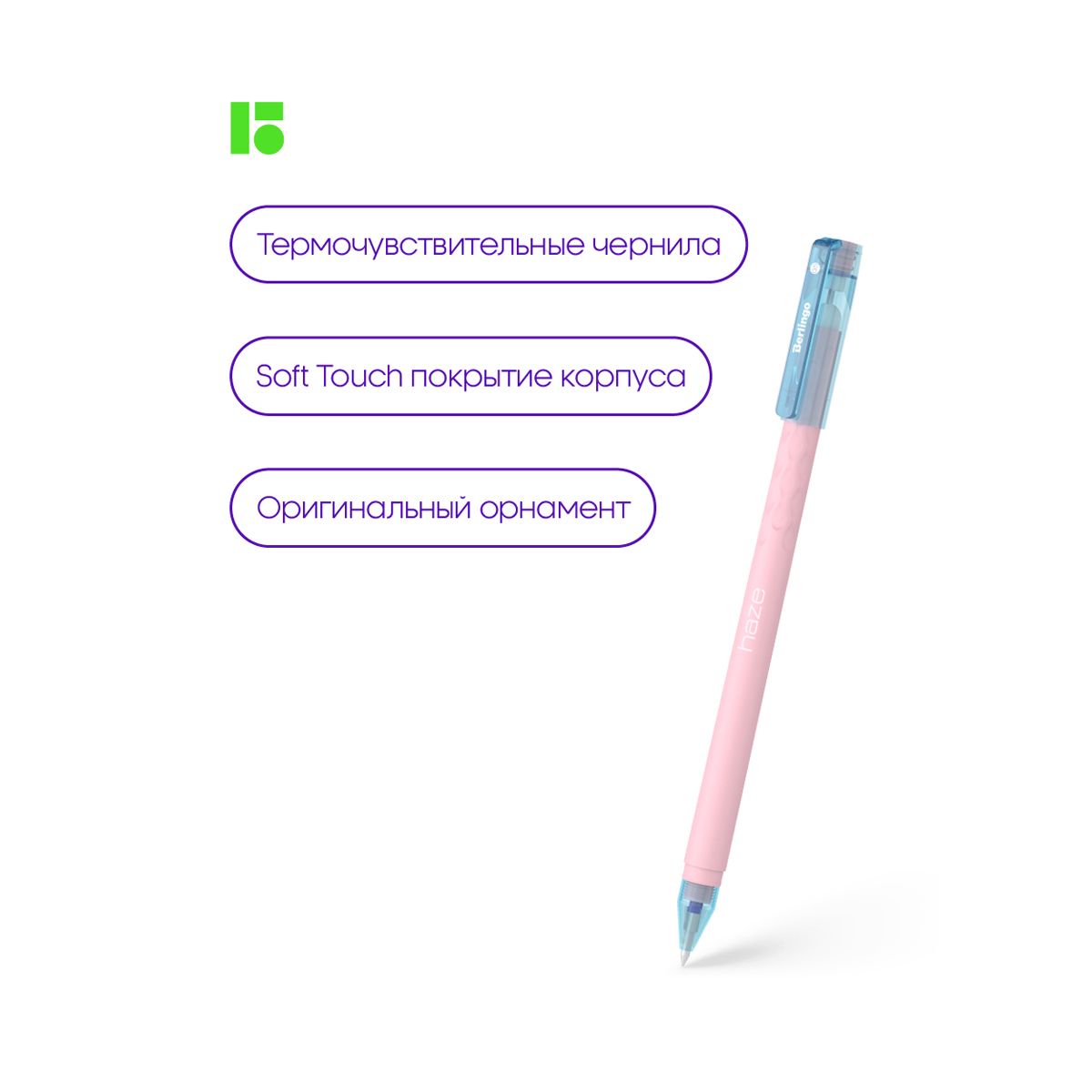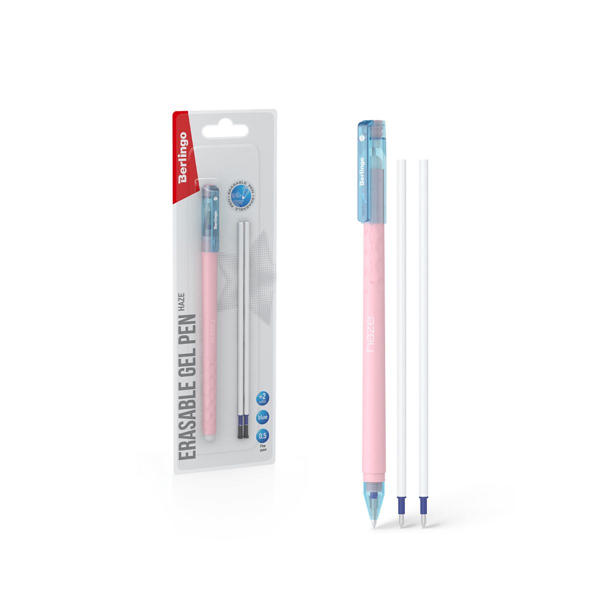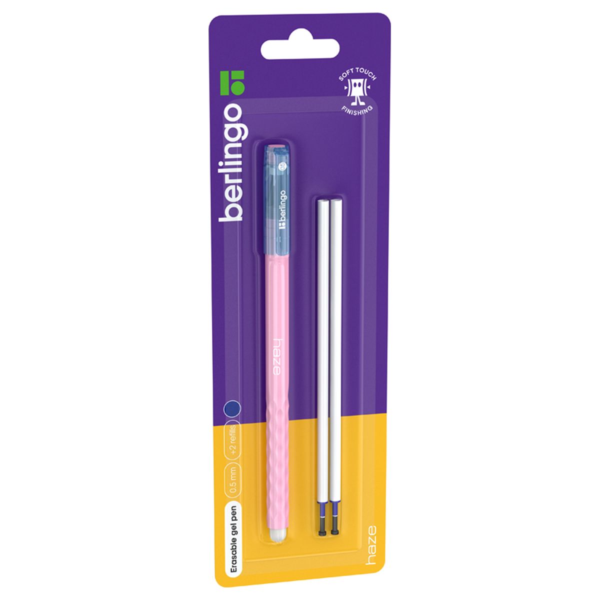Ручка гелевая стираемая Berlingo "Haze" синяя, +2 сменных стержня, 0,5мм, прорезин. корпус, розовый корпус