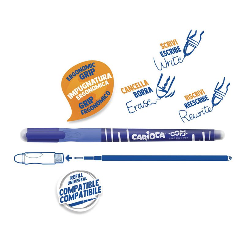 Ручка гелевая стираемая Carioca "Oops" синяя, грип, 0,7мм