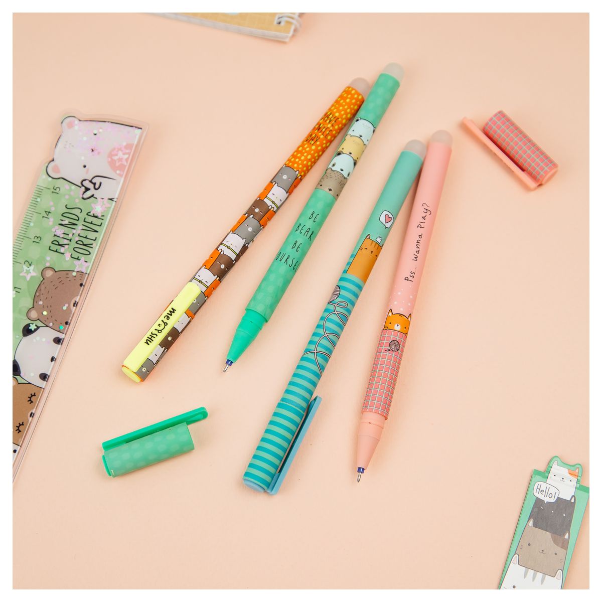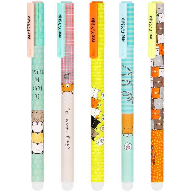Ручка гелевая стираемая MESHU "Beary Beary", синяя, 0,5мм, корпус ассорти, софт-тач