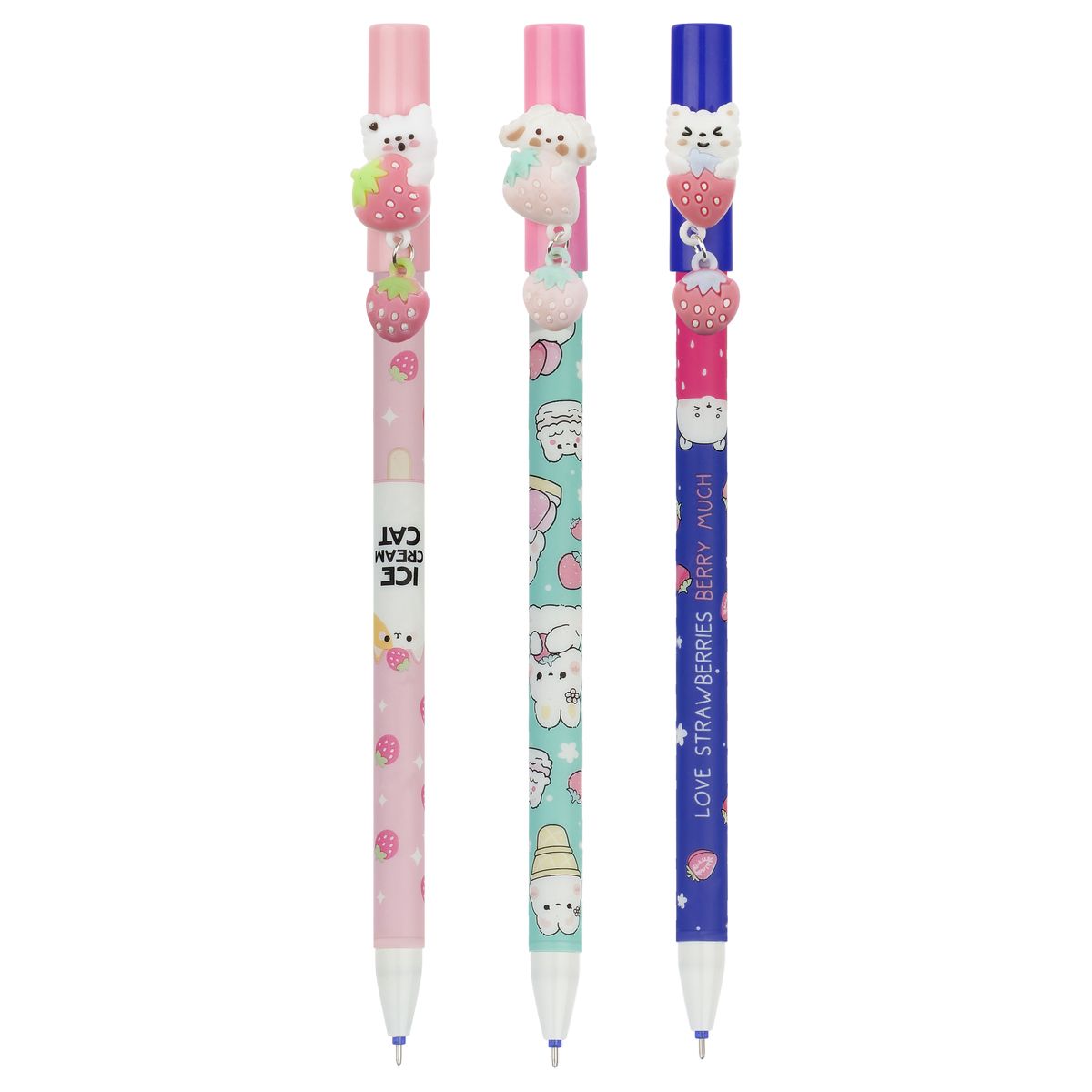Ручка гелевая стираемая MESHU "Friendsberry" синяя, 0,5мм, корпус ассорти, с топпером