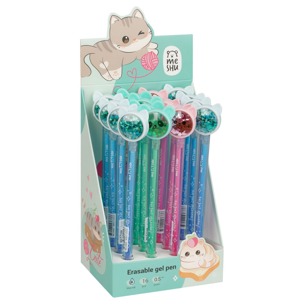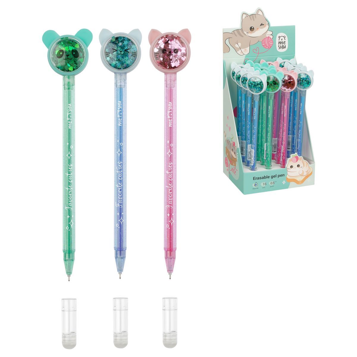 Ручка гелевая стираемая MESHU "Funny smile" синяя, 0,5мм, корпус ассорти, с топпером