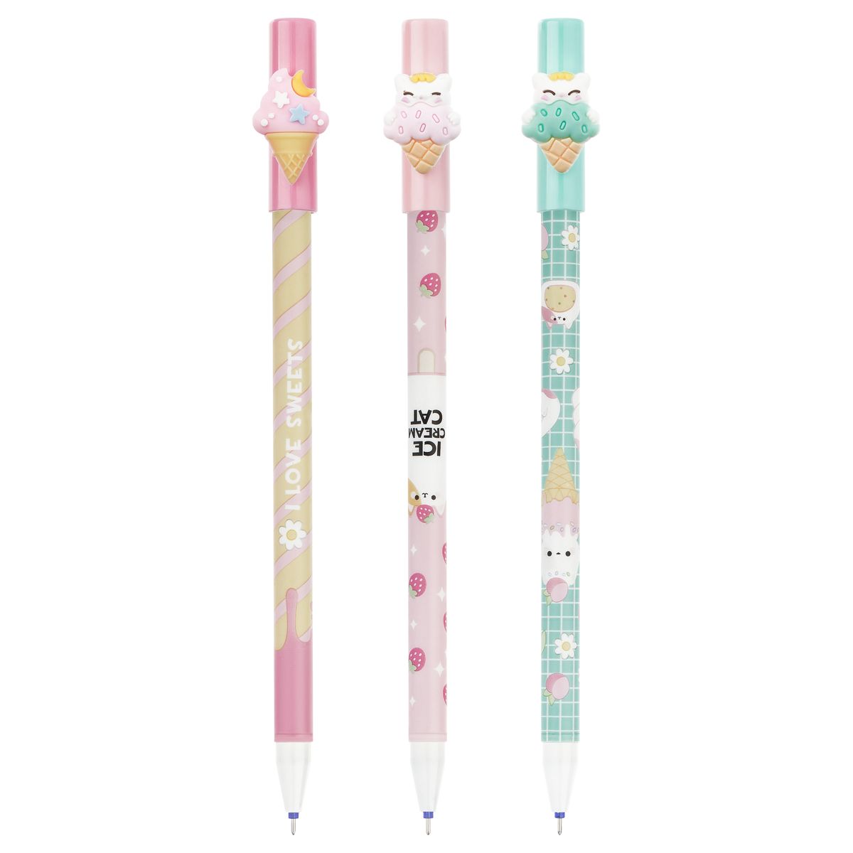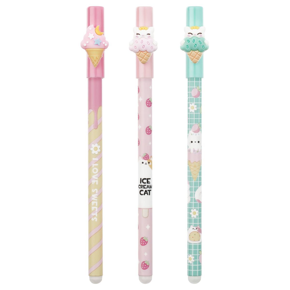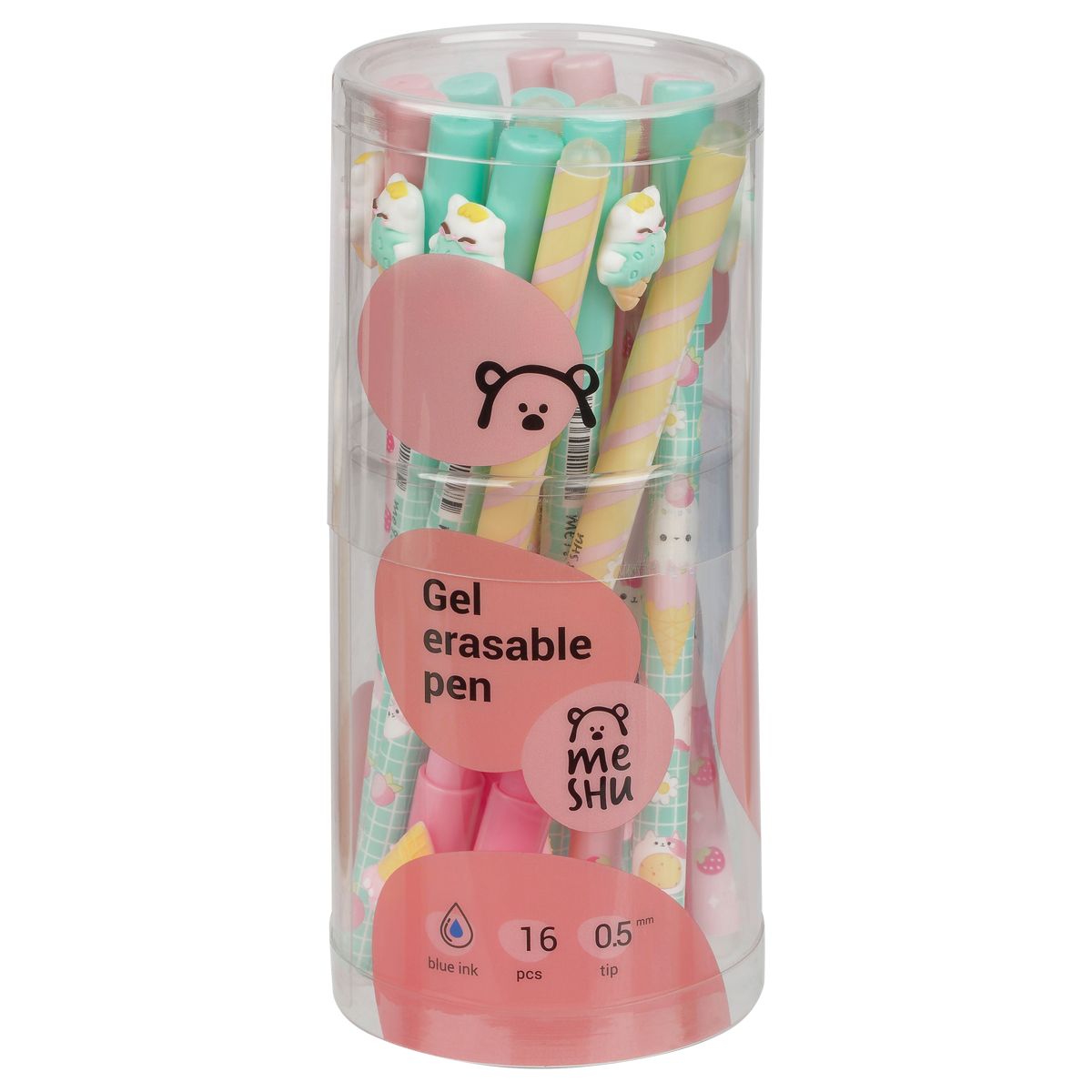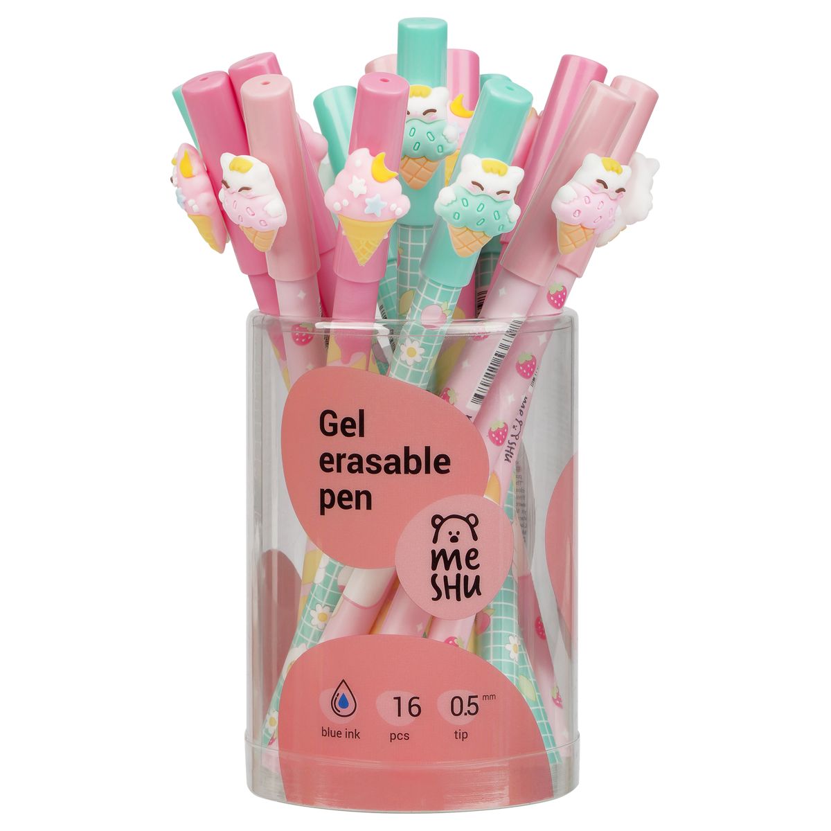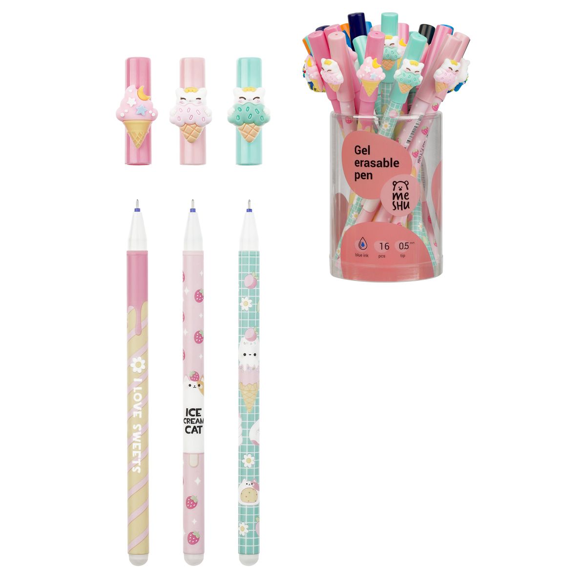 Ручка гелевая стираемая MESHU "Ice cream" синяя, 0,5мм, корпус ассорти, с топпером