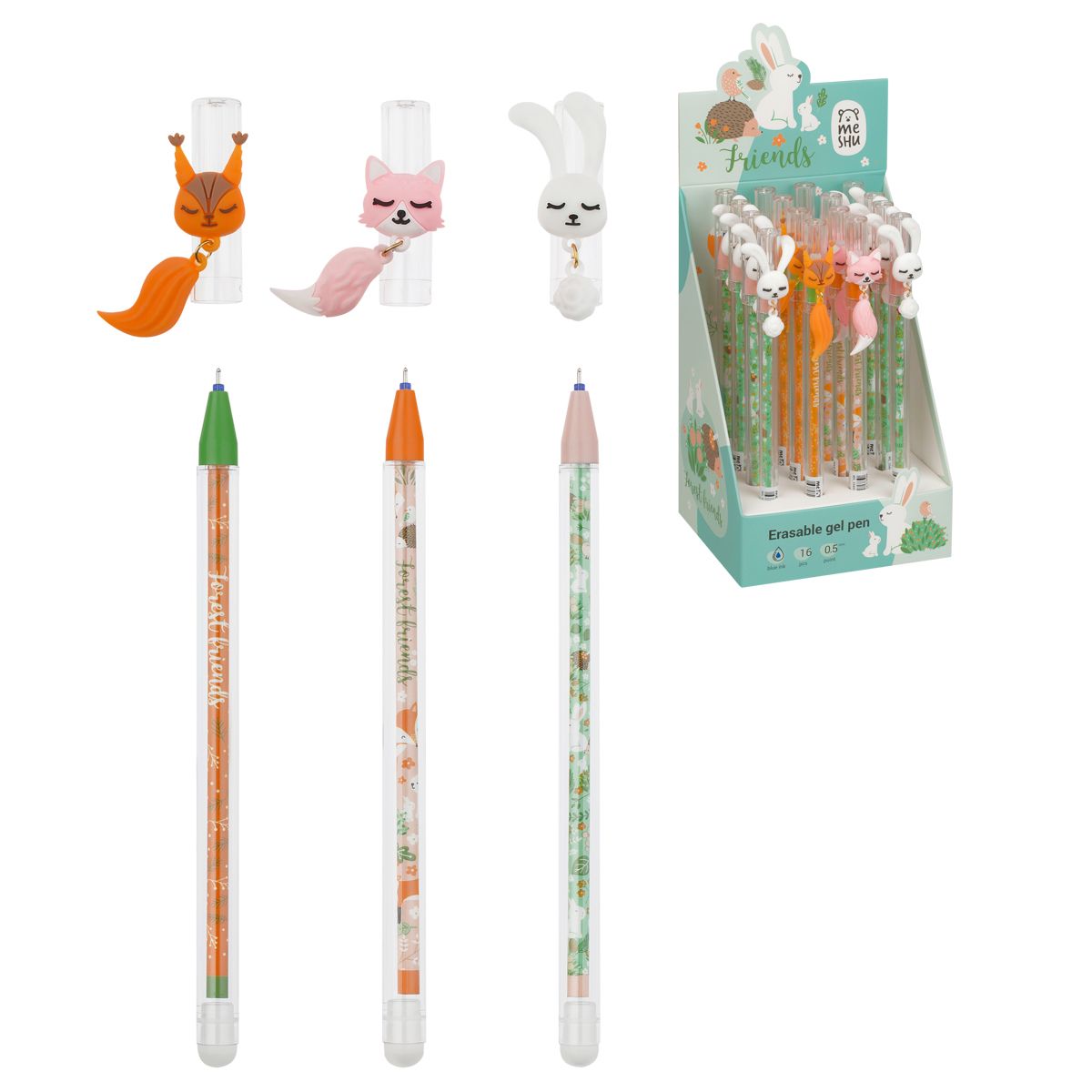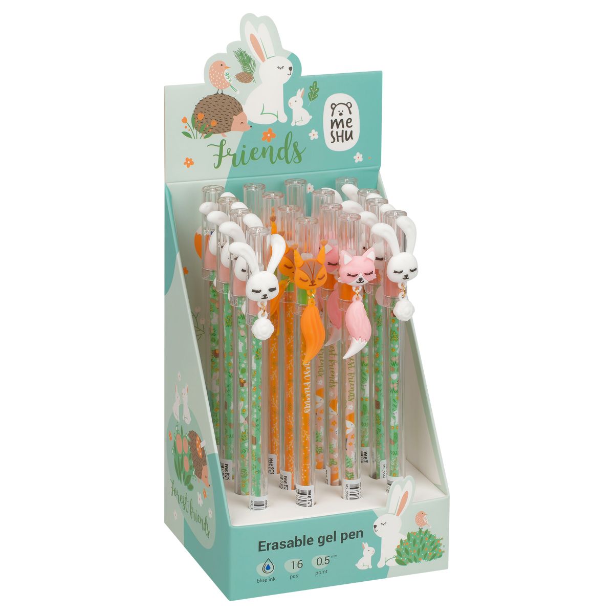 Ручка гелевая стираемая MESHU "Lovely animals" синяя, 0,5мм, корпус ассорти, с топпером