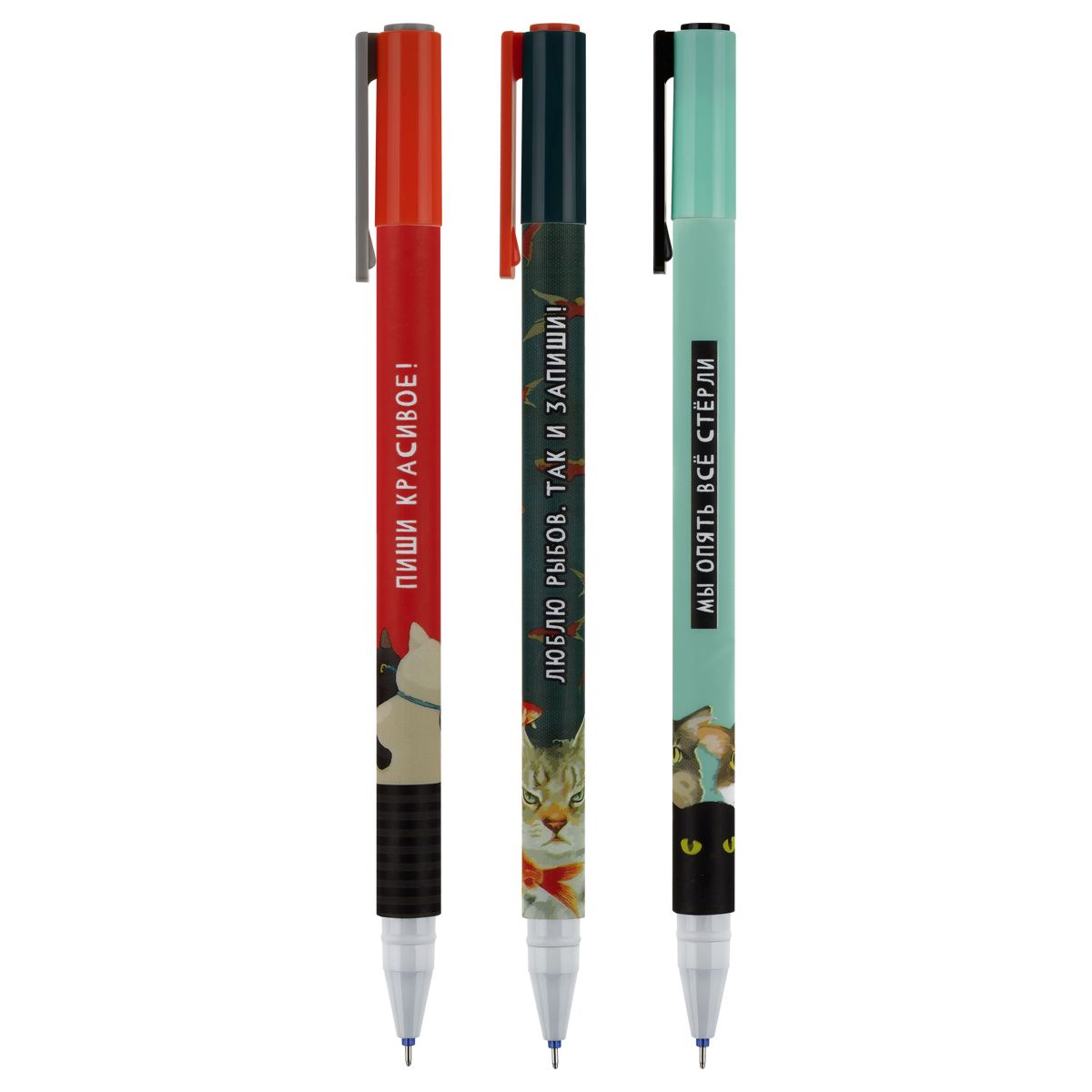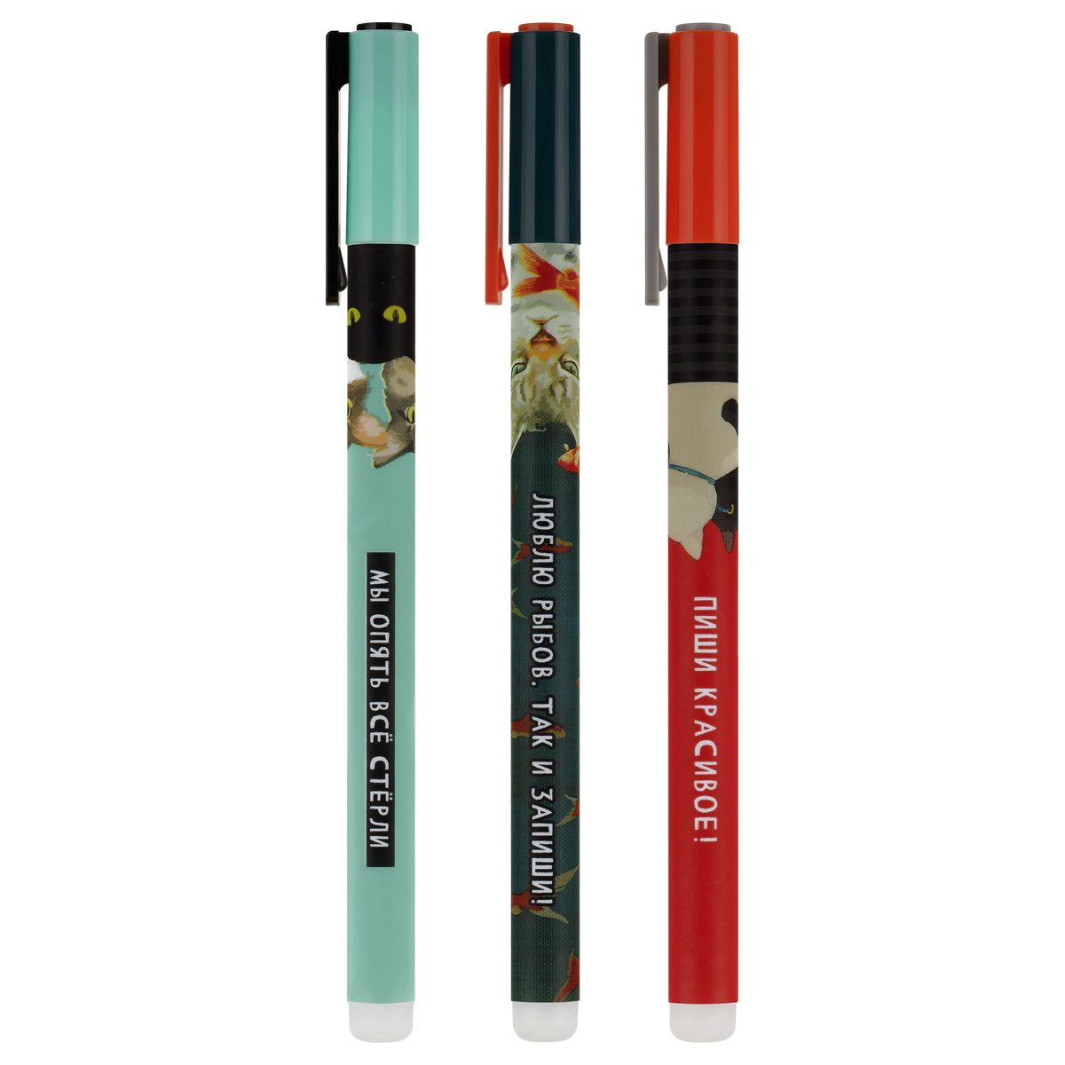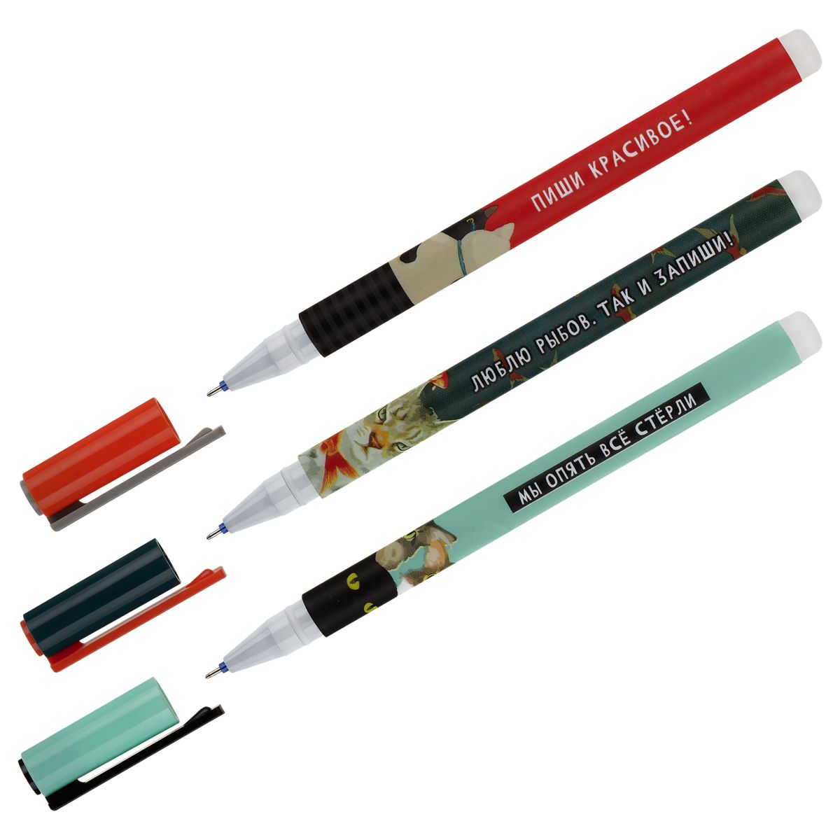 Ручка гелевая стираемая MESHU "Moody cats" синяя, 0,5мм, корпус ассорти