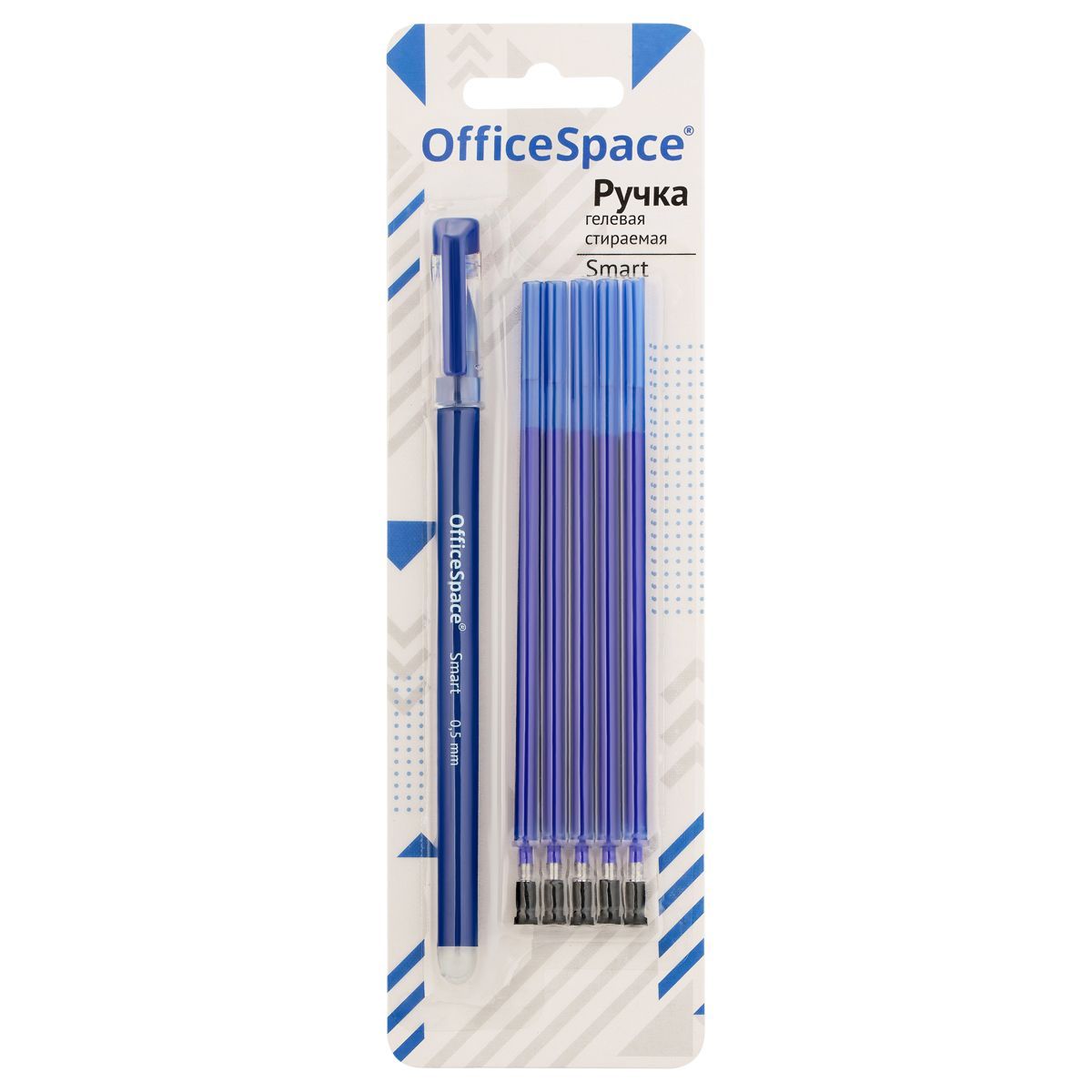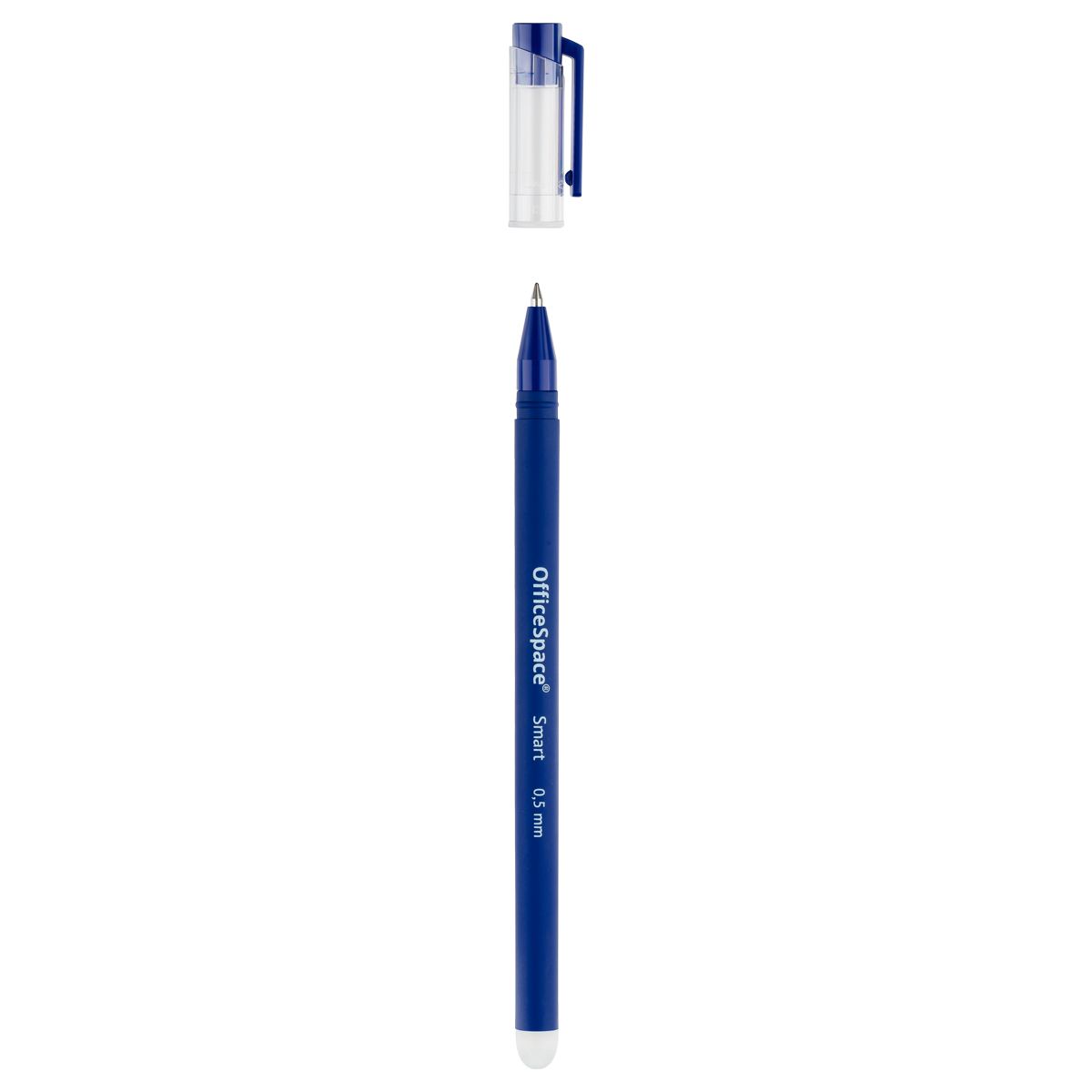 Ручка гелевая стираемая OfficeSpace "Smart" синяя, +5 сменных стерженей, 0,5мм, soft-touch, блистер