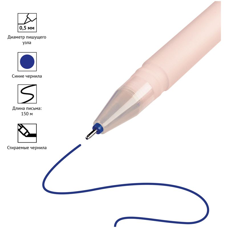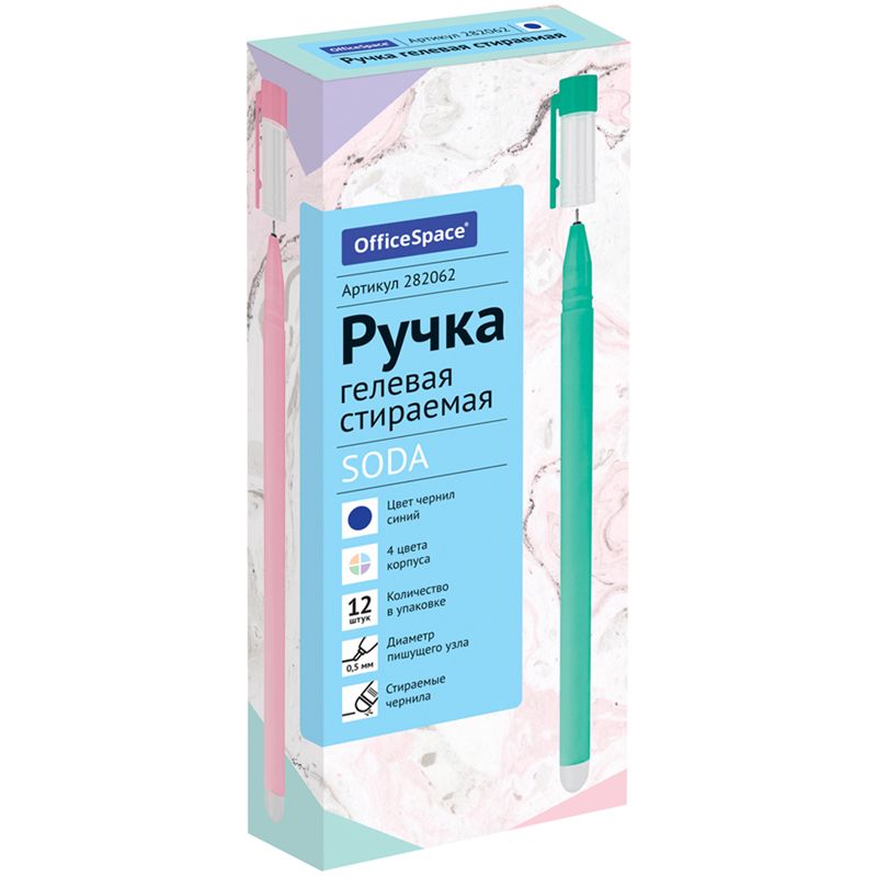 Ручка гелевая стираемая OfficeSpace "Soda" синяя, 0,5м, антискол. корпус ассорти
