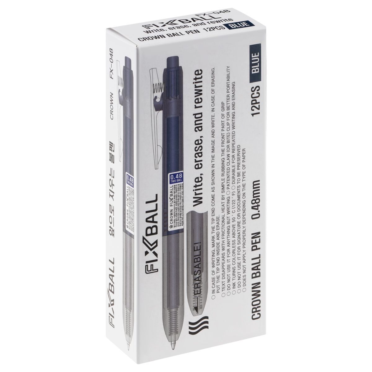 Ручка шариковая автоматическая стираемая Crown "Fixball" синяя, 0,48мм