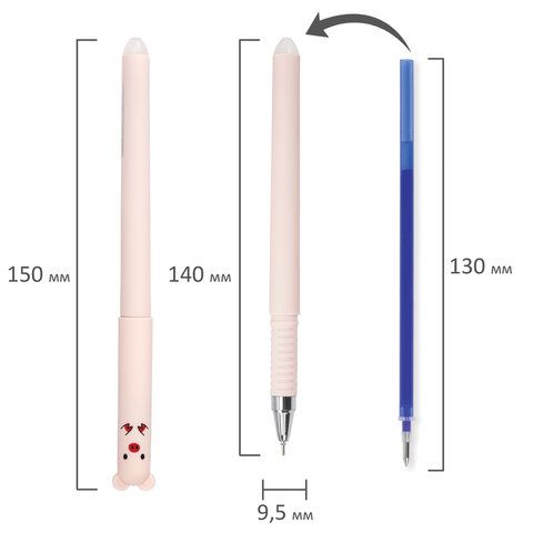 Ручка стираемая гелевая FUNSTER (ФАНСТЕР) "CUTE ANIMALS", СИНЯЯ, корпус soft-touch ассорти, узел 0,5 мм, линия письма 0,35 мм, 144434