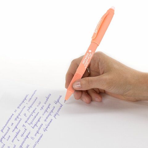 Ручка стираемая гелевая с грипом BRAUBERG "SOFT&SILK PASTEL", СИНЯЯ, корпус ассорти, узел 0,7 мм, 143934