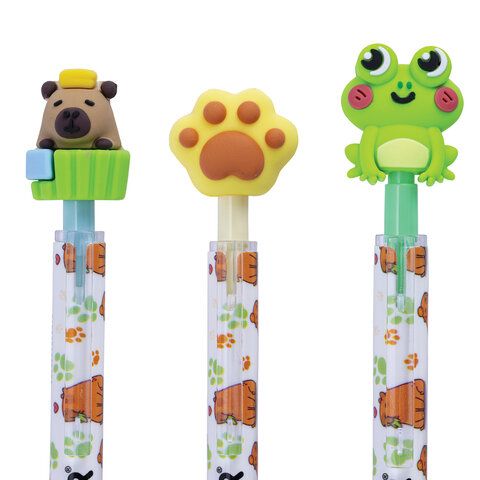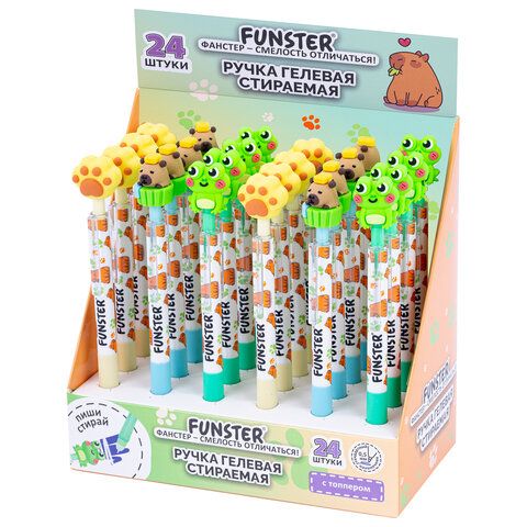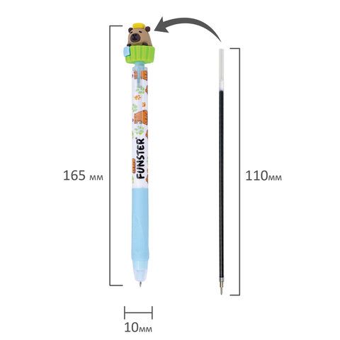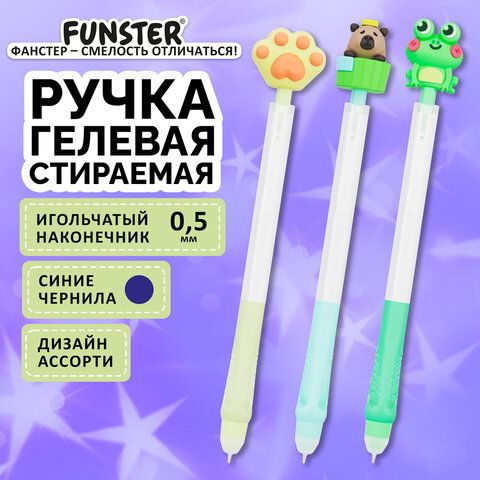 Ручка стираемая с топпером гелевая FUNSTER "CUTE ANIMALS", СИНЯЯ, ассорти, пишущий узел 0,5 мм, 144516