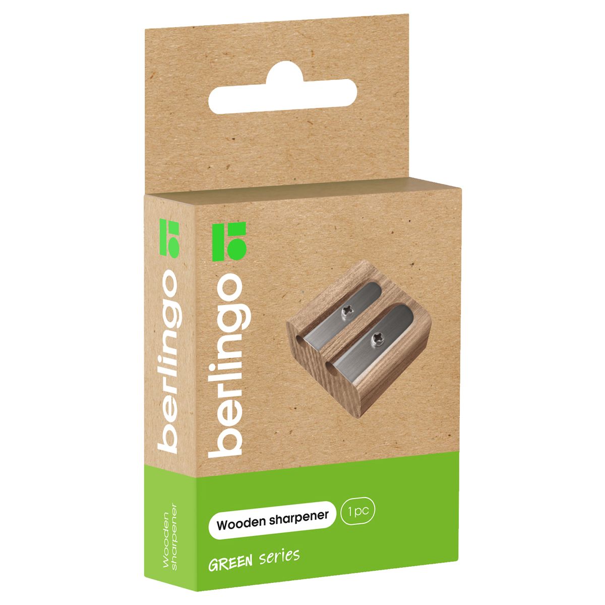 Точилка деревянная Berlingo "Green Series", 2 отверстия, в индивидуальной коробке, с европодвесом