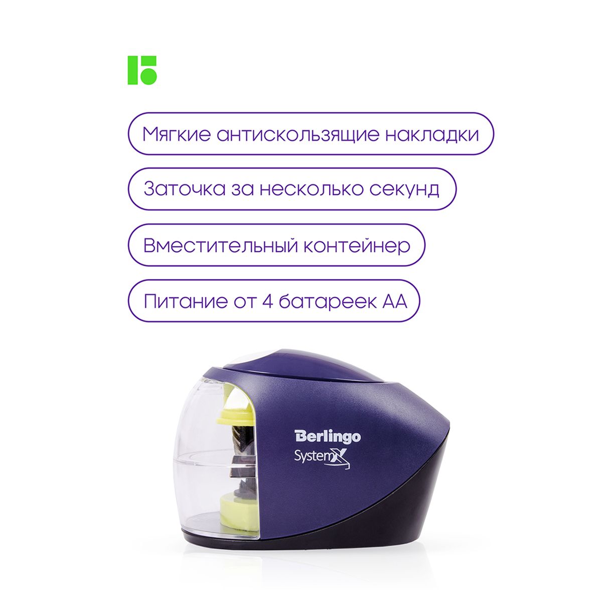 Точилка электрическая Berlingo "SystemX" 1 отверстие, с контейнером, картон. упаковка