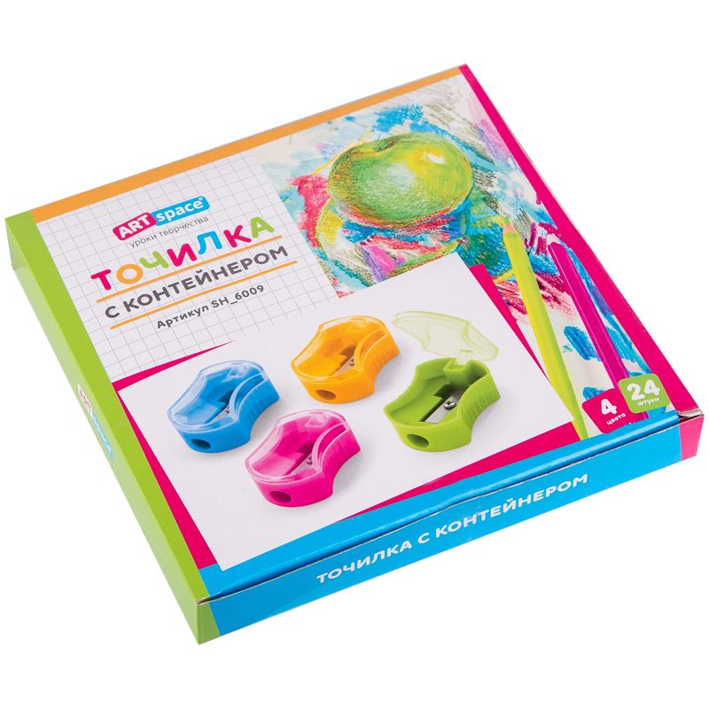 Точилка пластиковая ArtSpace 1 отверстие, контейнер, с крышкой, ассорти
