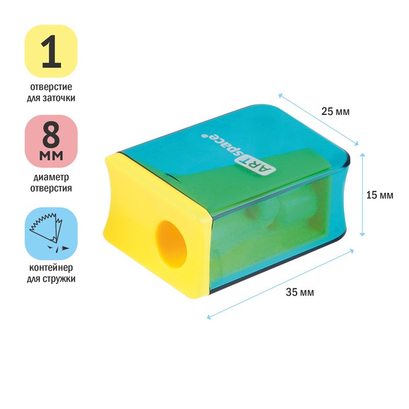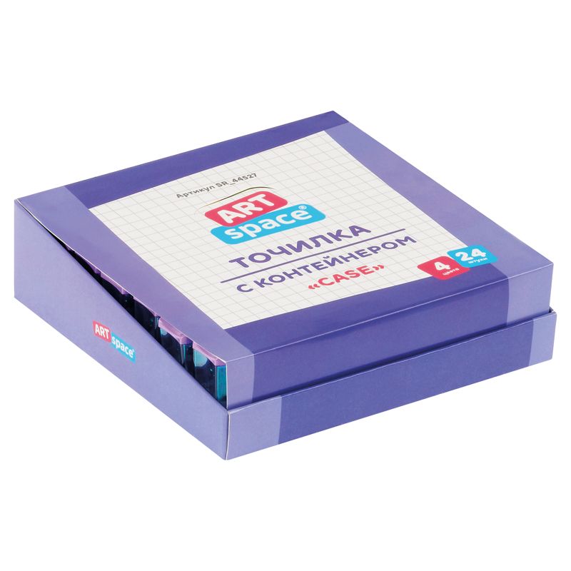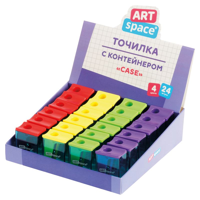 Точилка пластиковая ArtSpace "Case", 1 отверстие, с контейнером, ассорти