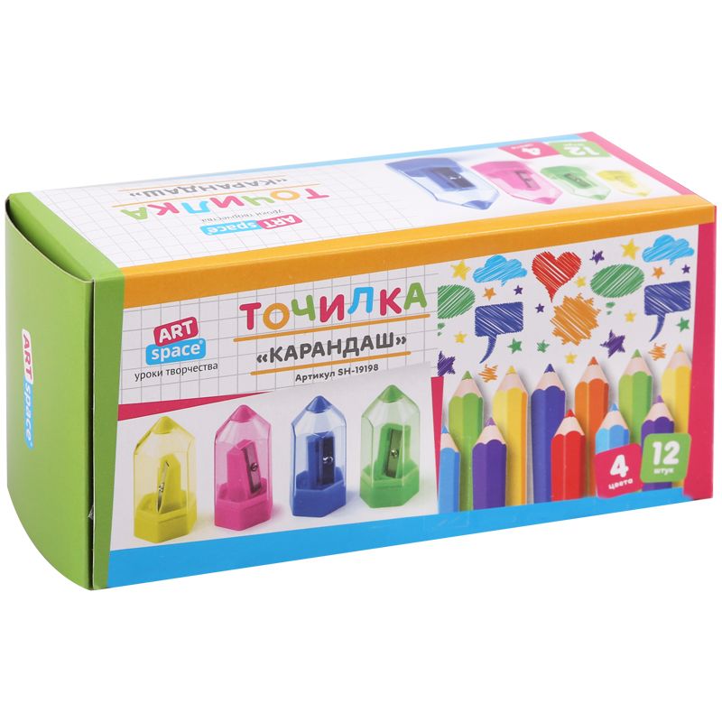 Точилка пластиковая ArtSpace "Карандаш" 1 отверстие, контейнер, ассорти