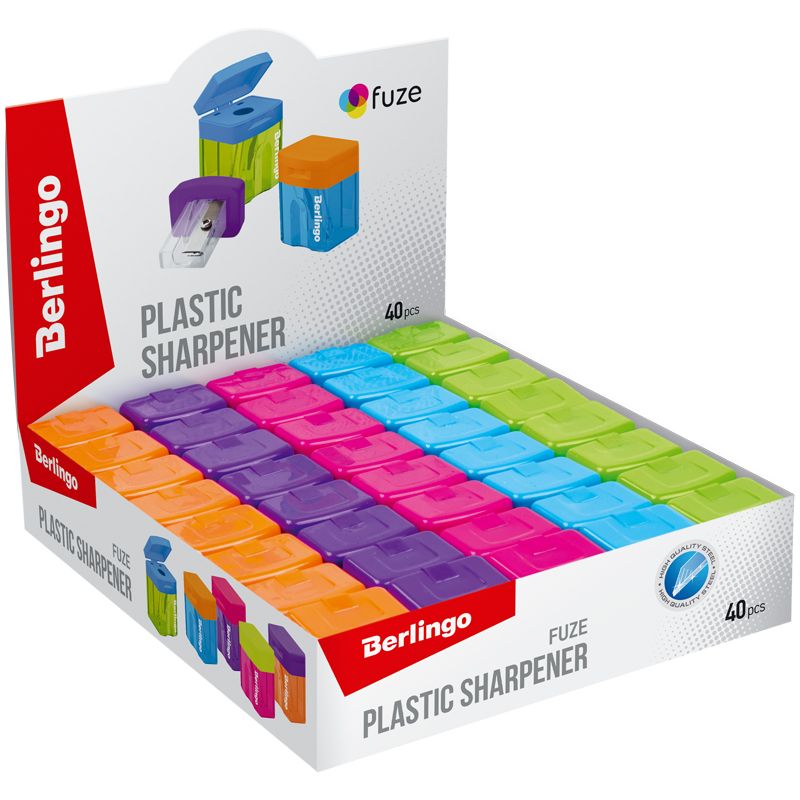 Точилка пластиковая Berlingo "Fuze" 1 отверстие, контейнер, ассорти