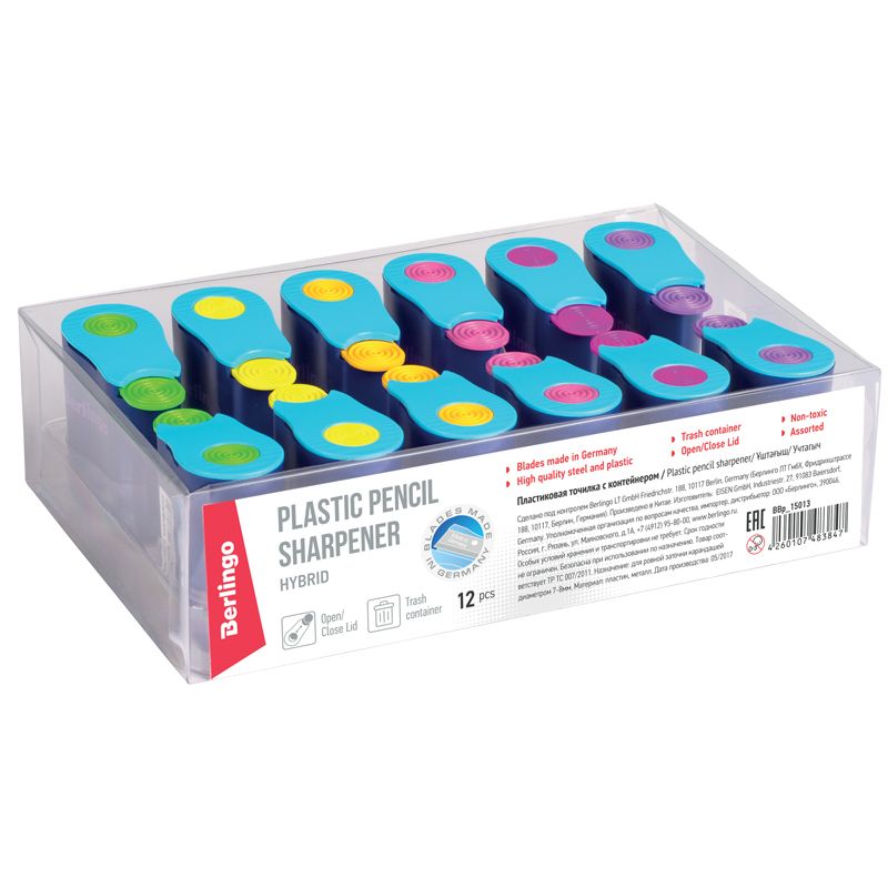 Точилка пластиковая Berlingo "Hybrid" 1 отверстие, контейнер, ассорти